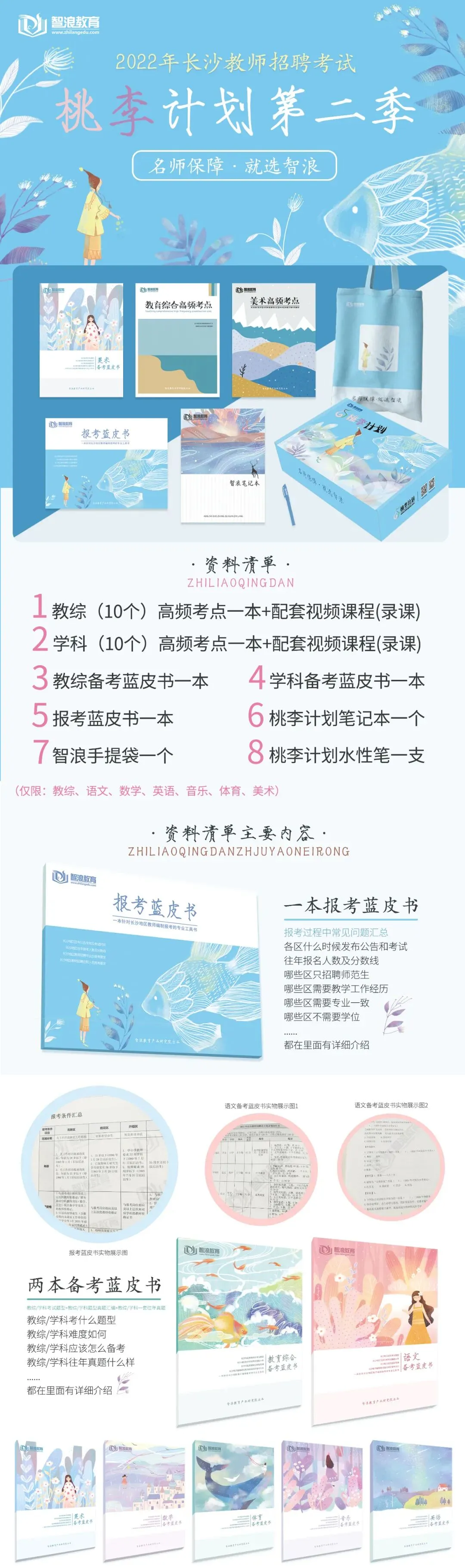 根据2021年长沙最新考情编写的《报考蓝皮书》、《备考蓝皮书》、《教综高频考点》、《学科高频考点》及其对应全套网课(统称桃李计划大礼包)现对智浪老学员及参与真题活动并提供有效真题的老师免费发放。各位满足免费发放条件的老师请根据下文中的方式及时与我们取得联系,逾期不候。