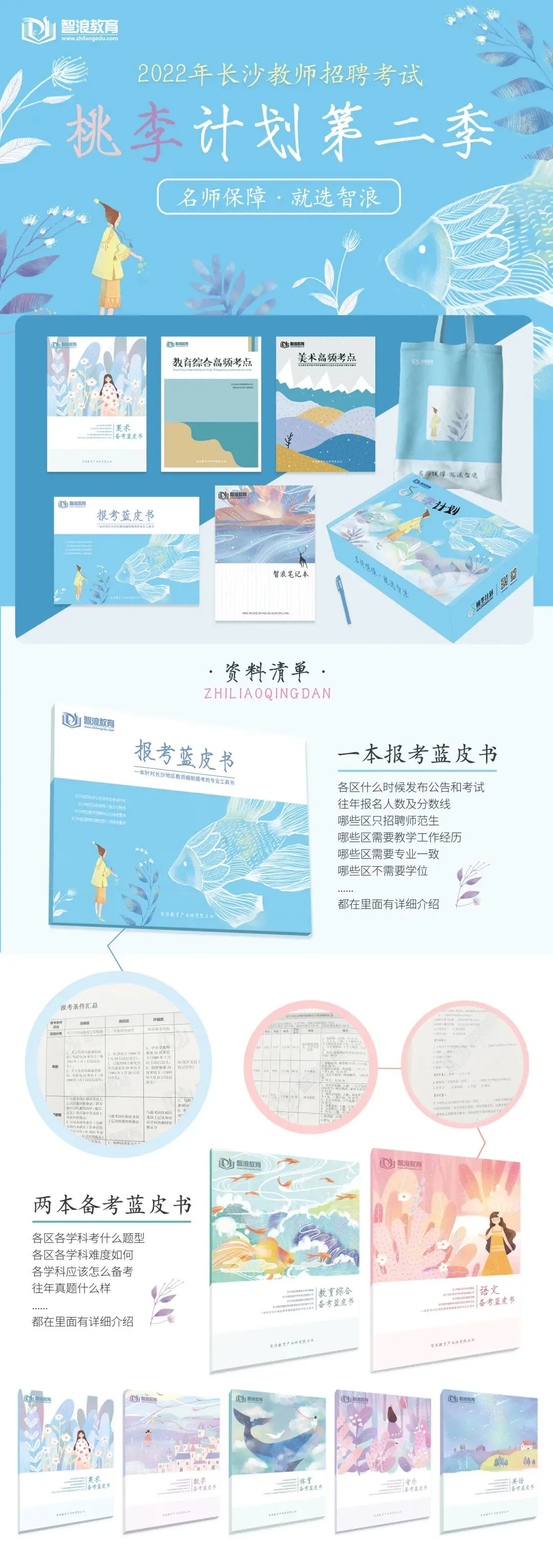 根据2021年长沙最新考情编写的《报考蓝皮书》、《备考蓝皮书》、《教综高频考点》、《学科高频考点》及其对应全套网课(统称桃李计划大礼包)现对智浪老学员及参与真题活动并提供有效真题的老师免费发放。除此之外,不满足免费领取条件的老师,也可以通过购买获取。具体领取与获取方式如下: