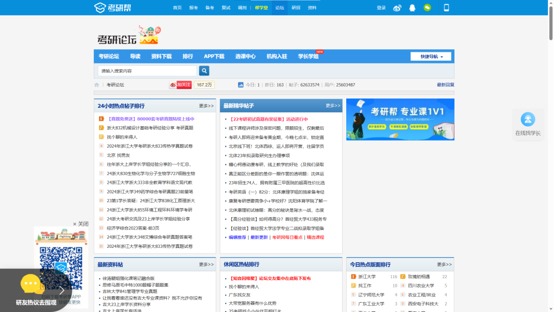老牌考研网站了,网站目前注册用户25603487,可见一斑。网站内有很多的版块可供浏览参考寻找方便,同时也有很多的经验贴和资料分享,说不好在里面也能碰到研友,搭伴。