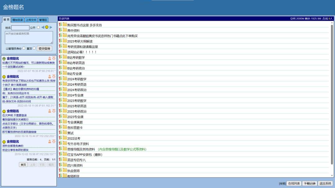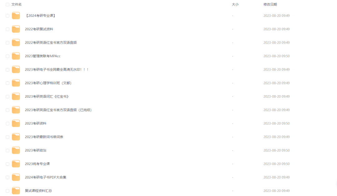 这个网站和安心考研一样都是采用的永硕E盘进行分享。分享的形式也多为百度网盘且完全免费,2023年考研所用到的资料每天也依旧在更新中,考研必备。