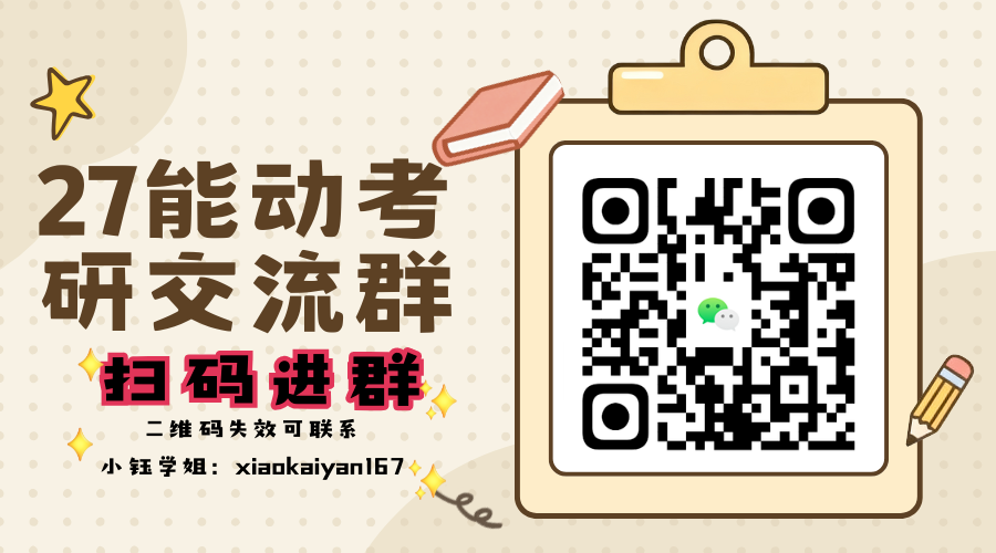 关注公众号 ▶ 进入能动26复试调剂群或27备考交流群 ▶ 加小钰学姐:xiaokaiyan167,备注“26复试资料包”“27初试资料包”,即可获取。