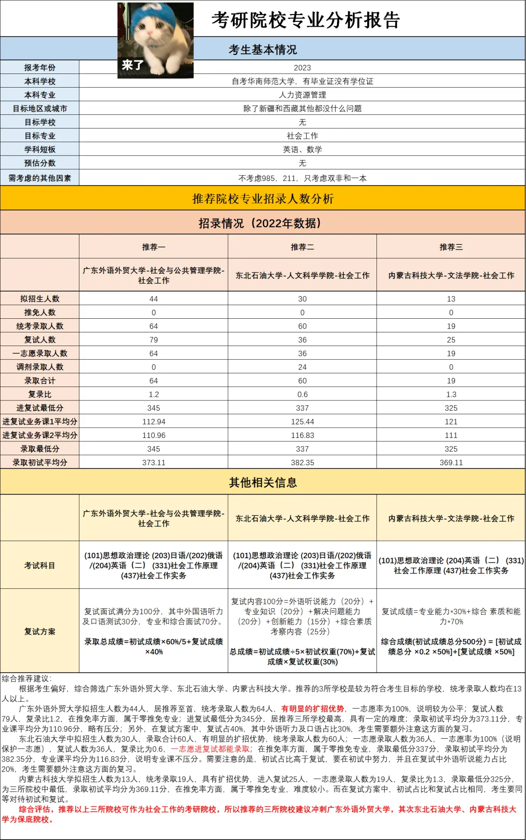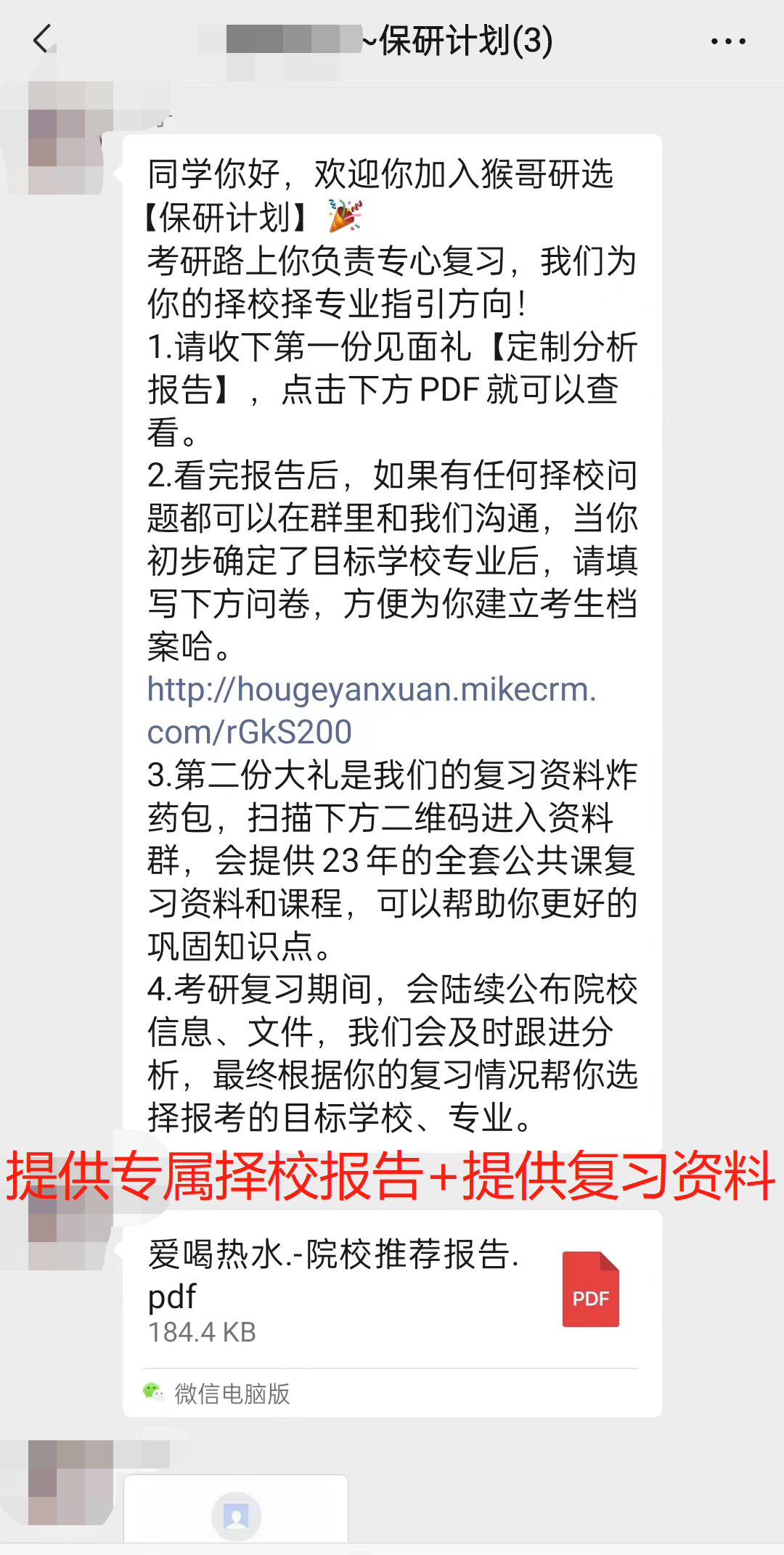 所以,如果要想顺利的择校,做到避坑避雷,甚至还想要捡个漏~这个过程一定是需要有人指点迷津的!于是,猴哥研选团队推出了26考研人的保姆级择校服务——【择校保姆班】,只需499元。后续根据报名人数,逐步涨价,先到先优惠!立即报名根据考生择校需求,出具1份专属择校报告(包含冲刺、求稳、保底三档难度),以及与考生全程一对一择校咨询沟通直至确认目标专业学校。服务期间考生可以根据需要,更新目标院校的最新数据和信息。该资料均是结合目标专业、学校的考试大纲、考试要求,由上岸的学长学姐整理,专业编辑老师审核的内部专业课资料,非常适合自命题学校考生使用,针对性极强!目前已有上千名考生使用并成功上岸,可以放心使用。98%以上的学校、专业均有对应资料。初试资料包含:英语高频词汇、考研常识全解、学习思维脑图、历年真题、各类数政英押题卷模拟卷等等。复试资料包括:复试准备知识全解、联系导师模板、英文自我介绍模板、面试注意事项、综合面试答题技巧等等。考生如果一志愿未能上岸,有调剂需求的,可以出具1份调剂院校推荐报告,并提供一对一调剂咨询和相关考研调剂信息。专属小群会定期更新发布资料、资讯、信息,包括择校老师将提供解答择校困惑。6.专属系列考研服务优惠。