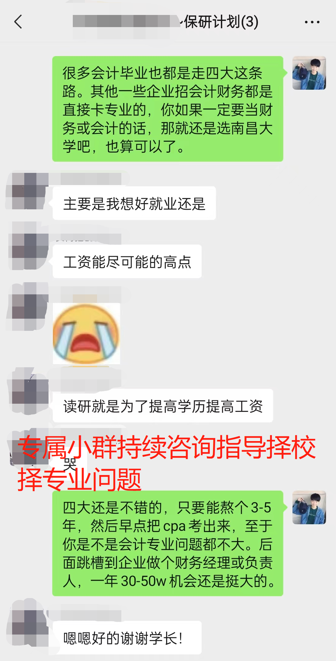 只要关于择校的一切问题,无论是政策、院校推荐、专业难度等等,用户在群内都可以咨询。