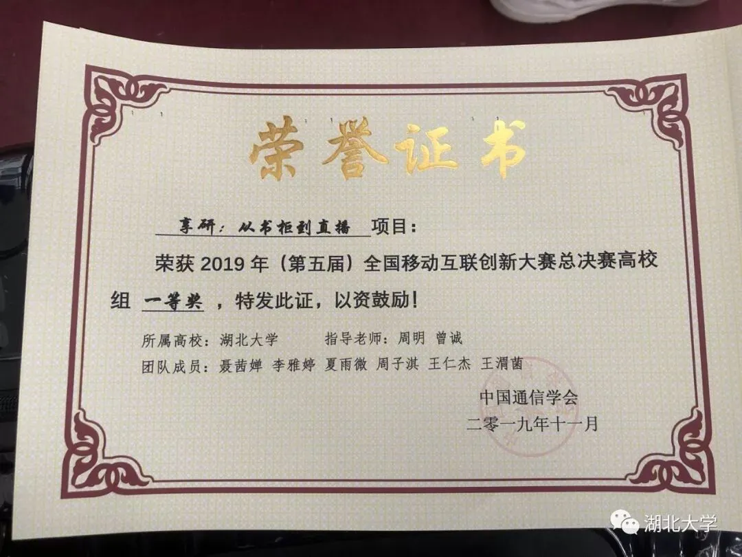 为解决考研后大量图书等资源被闲置、经验被浪费、考试信息供求失衡等问题,湖北大学由6人组成的学生团队,在老师指导下自主完成了“享研:从书柜到直播”创业项目。在近日结束的2019年全国移动互联创新大赛总决赛中,该项目从287个参赛作品中脱颖而出,斩获高校组一等奖。