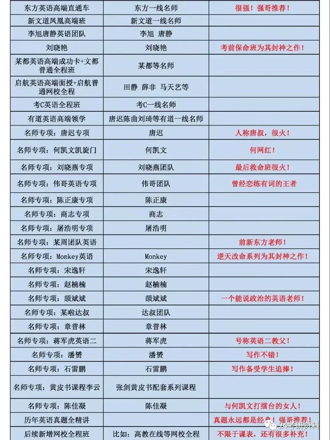 24考研资料目录
