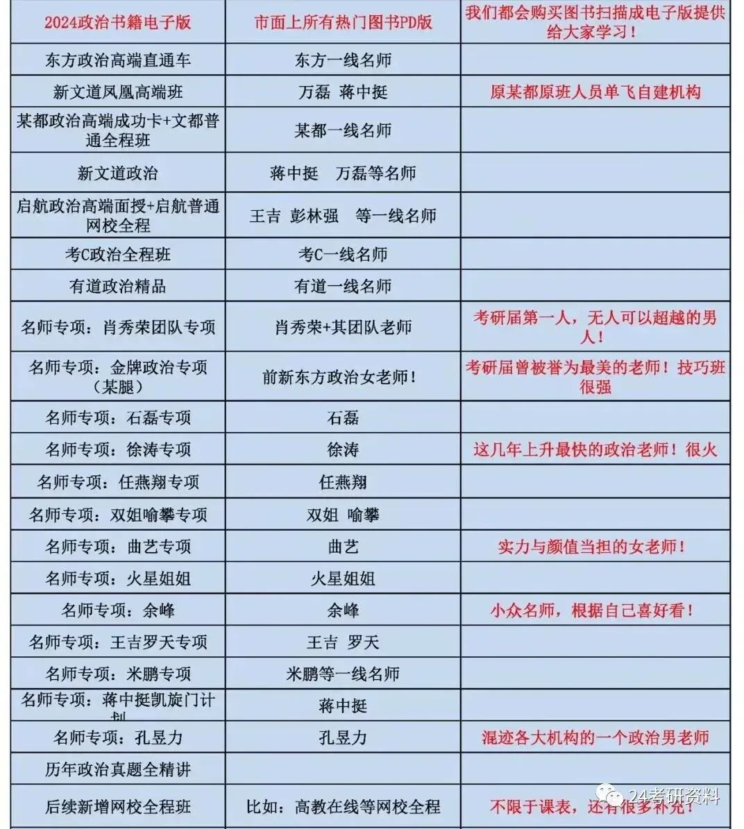 >24考研资料目录