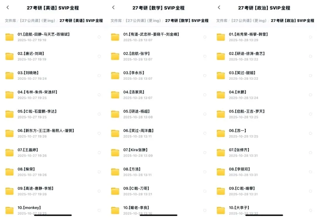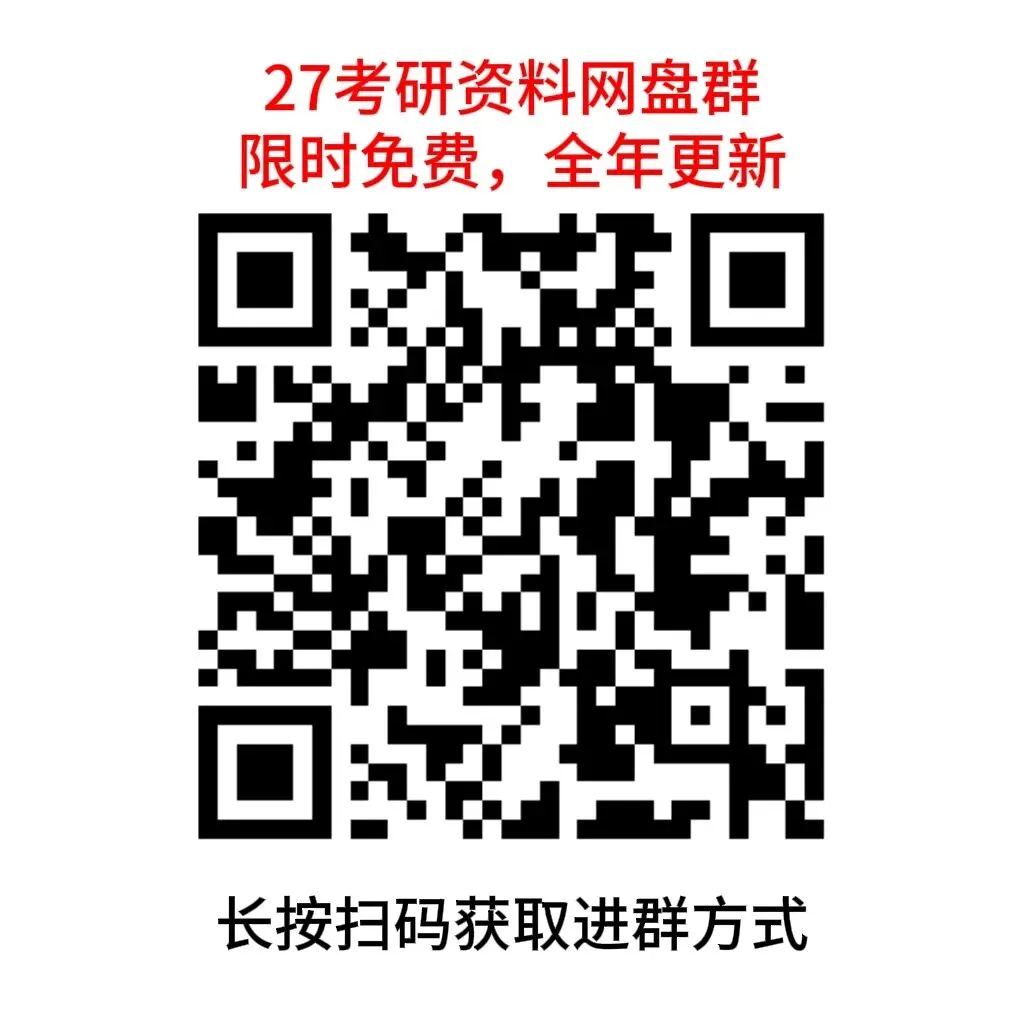 欢迎申请加入27考研资料网盘群,群内文件库共享最新2027全年的政治、英语、数学各机构公共课和专业课考研资料,每日更新,一直更新到考研结束(包括复试)。