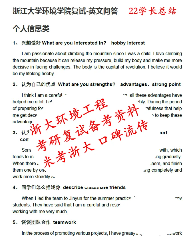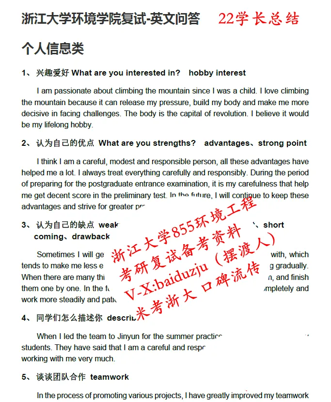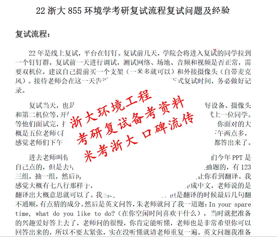 3.22浙大855环境学考研复试流程复试问题及经验4.855-环境工程英文问答--22学长总结