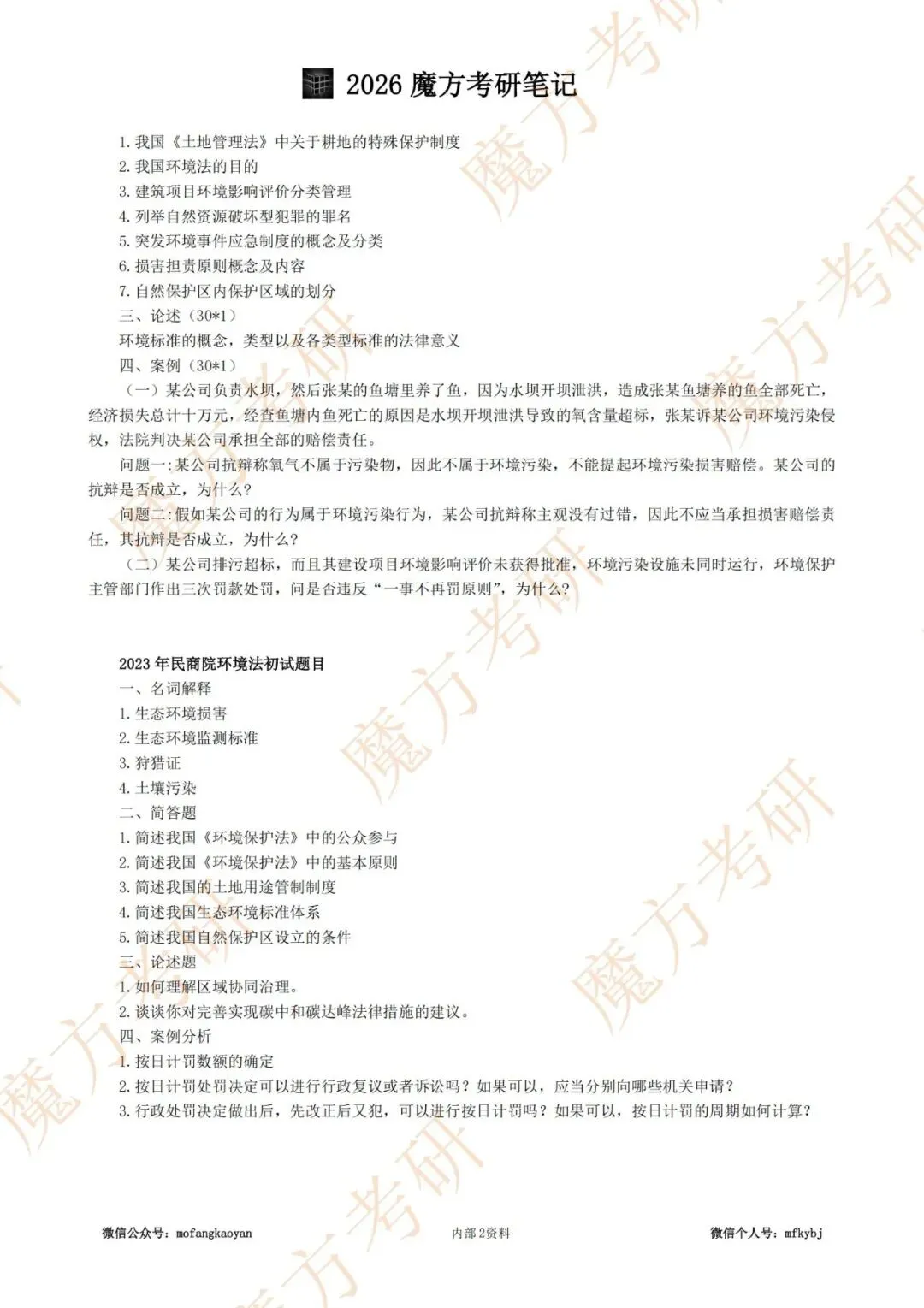 【现货】2026魔方考研:环境法复试资料!