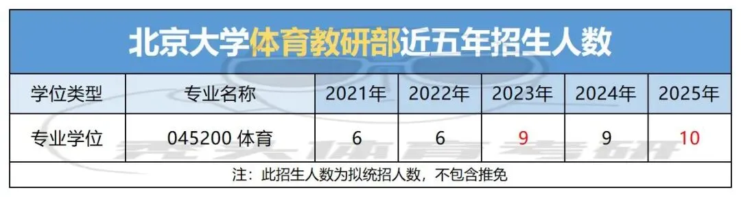 2025年北京大学体育教研部拟计划招收全日制统考体育硕士10人(不含推免)。