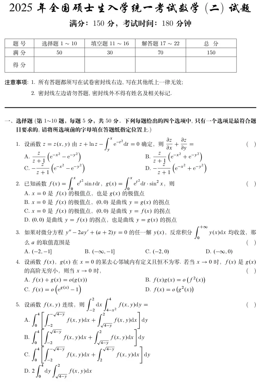 今天给各位考生准备的资料是:2020-2025历年考研数学一数学二数学三真题试卷+答案(电子版pdf)。