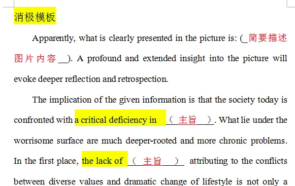 阅卷老师指定的作文模板: