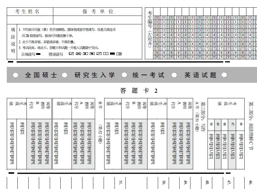 ps:答题卡一定提前熟悉,消除考试紧张感