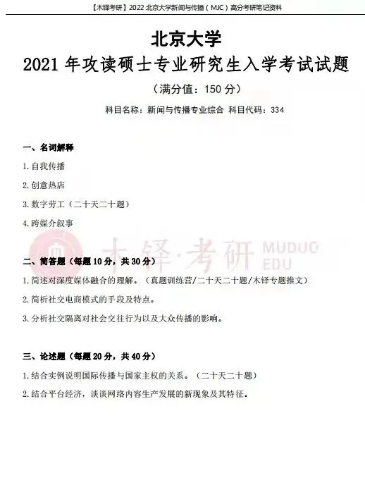今年的华师题目依然保持重视基础、紧追前沿的风格。首先,分别从试卷来看,334试卷考察热点知识居多,如新闻伦理专题、网络舆论专题、国际传播专题、危机传播专题和马新观专题,其中大部分专题华师都考察过哦~440试卷则考察新闻居多,如新闻史、媒介经营与管理、新闻三性专题、媒体融合专题(没错它又双叒叕来啦)等知识点。比较特殊的是,今年的名词解释是10分一道(审题一定要仔细啦!)、实务题没有考察评论而是专题策划。