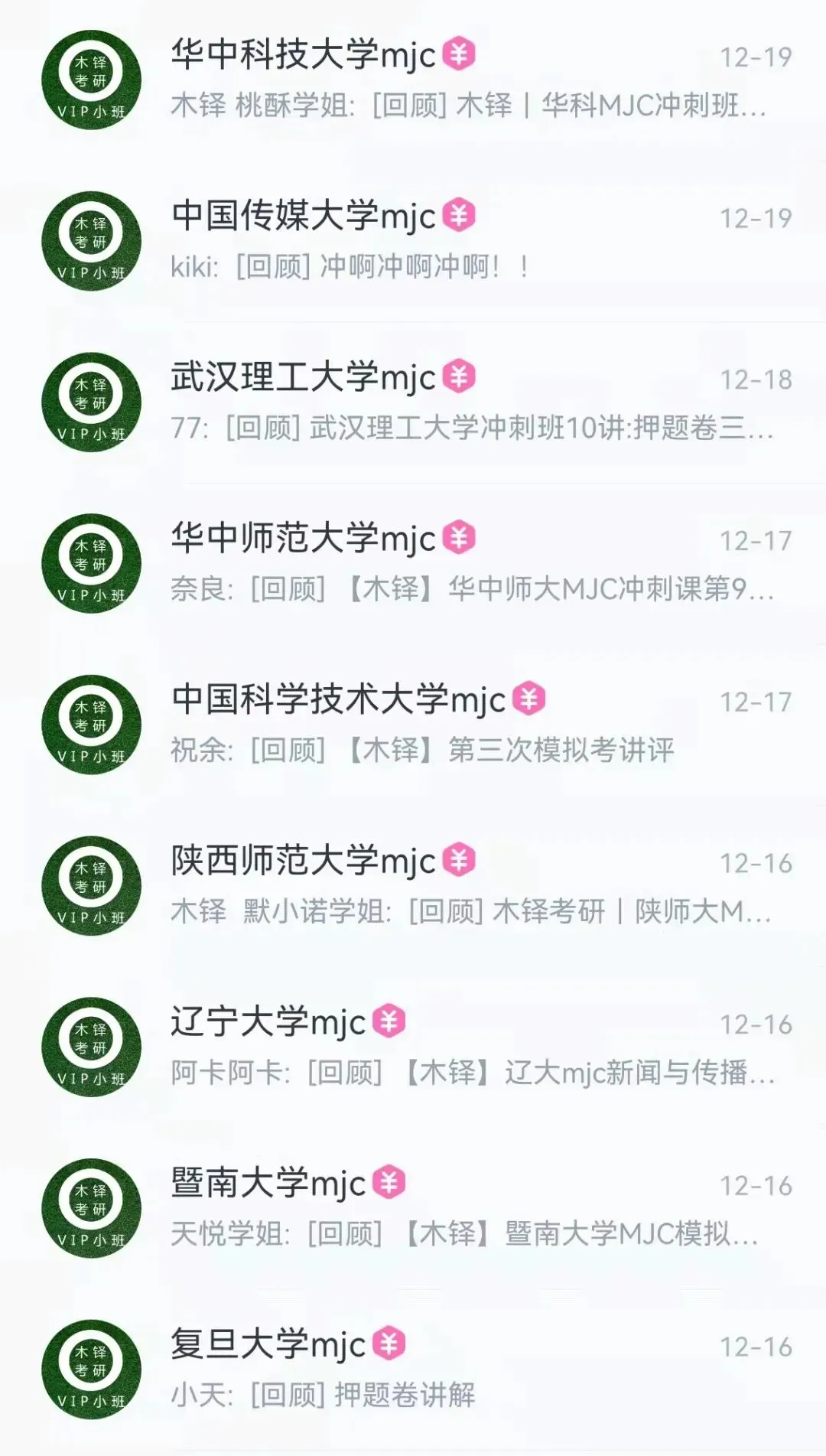 从今年4月到明年4月,院校专业课基础理论阶段到冲刺复习阶段,初试到复试全都不用担心。院校最新动向,学院导师最新研究内容等一手信息统统第一时间获得。
