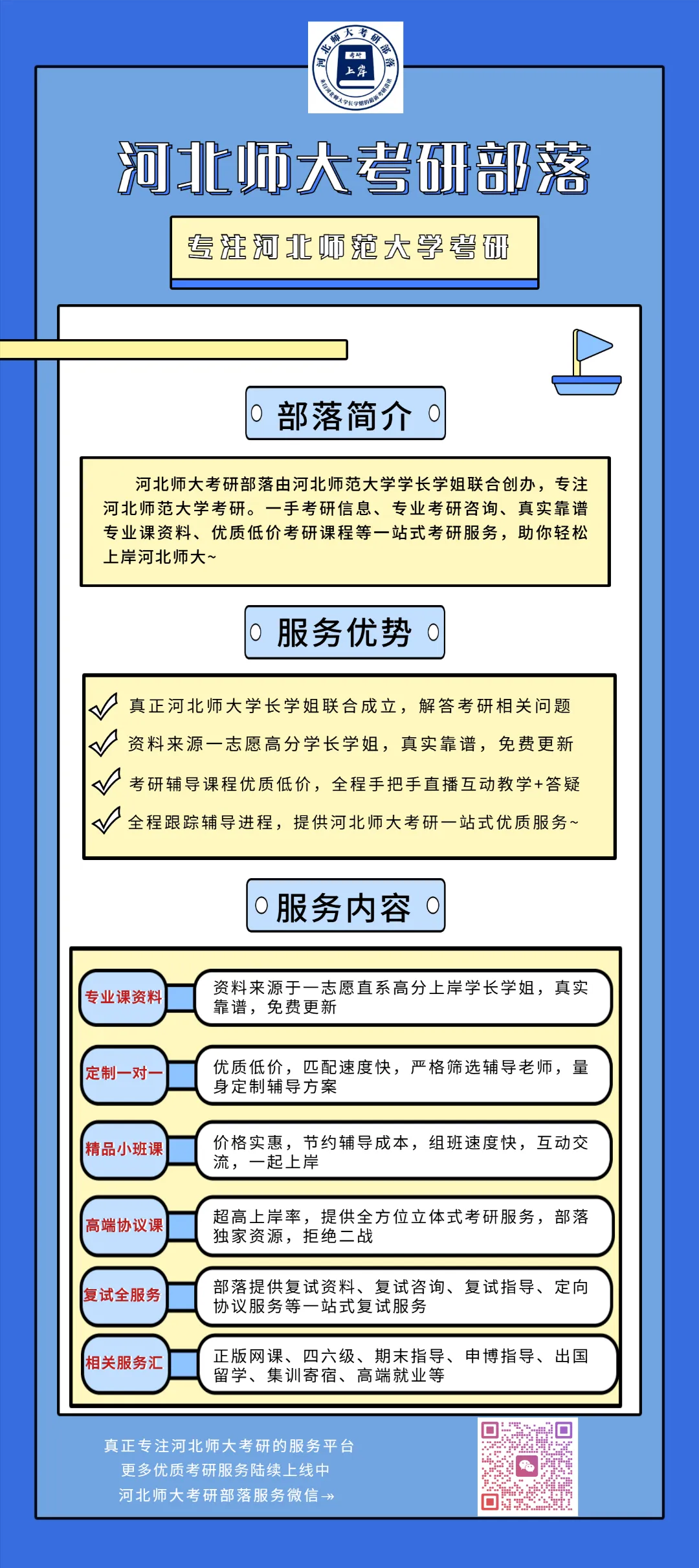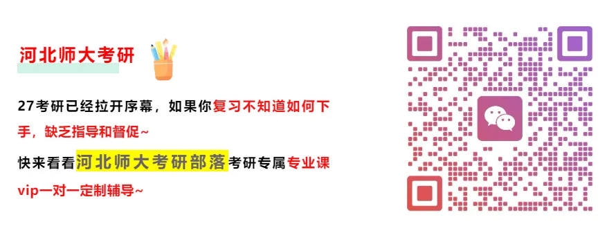 更多河北师范大学考研相关问题咨询及专业课vip一对一定制辅导课程详情,请扫下方微信二维码,河北师大直系高分学长学姐免费答疑解惑!!!