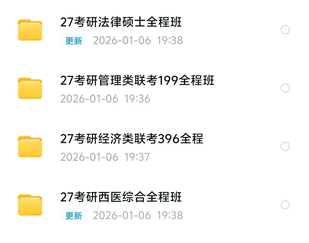 考研竞争越来越激烈,27考研想要顺利上岸,就必须好好利用网课视频学习资料,先复习为强!我们已经帮大家准备好最新最全的考研资料,全年免费提供全套考研资料,各种考研经验干货,助你一战成硕!