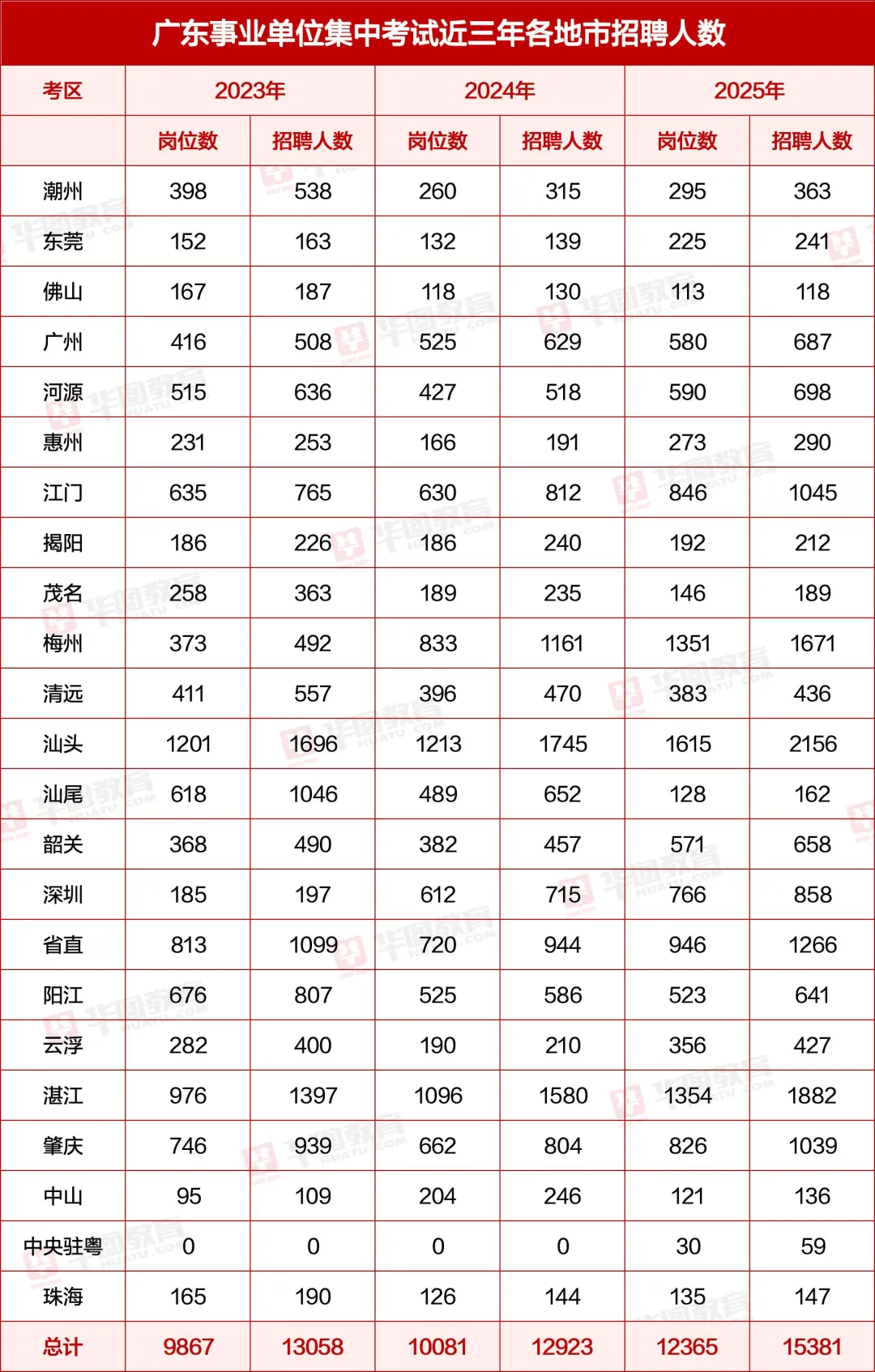 ✅ 广东事业单位集中招聘历年招聘人数(各地区具体招聘人数详见下表):
