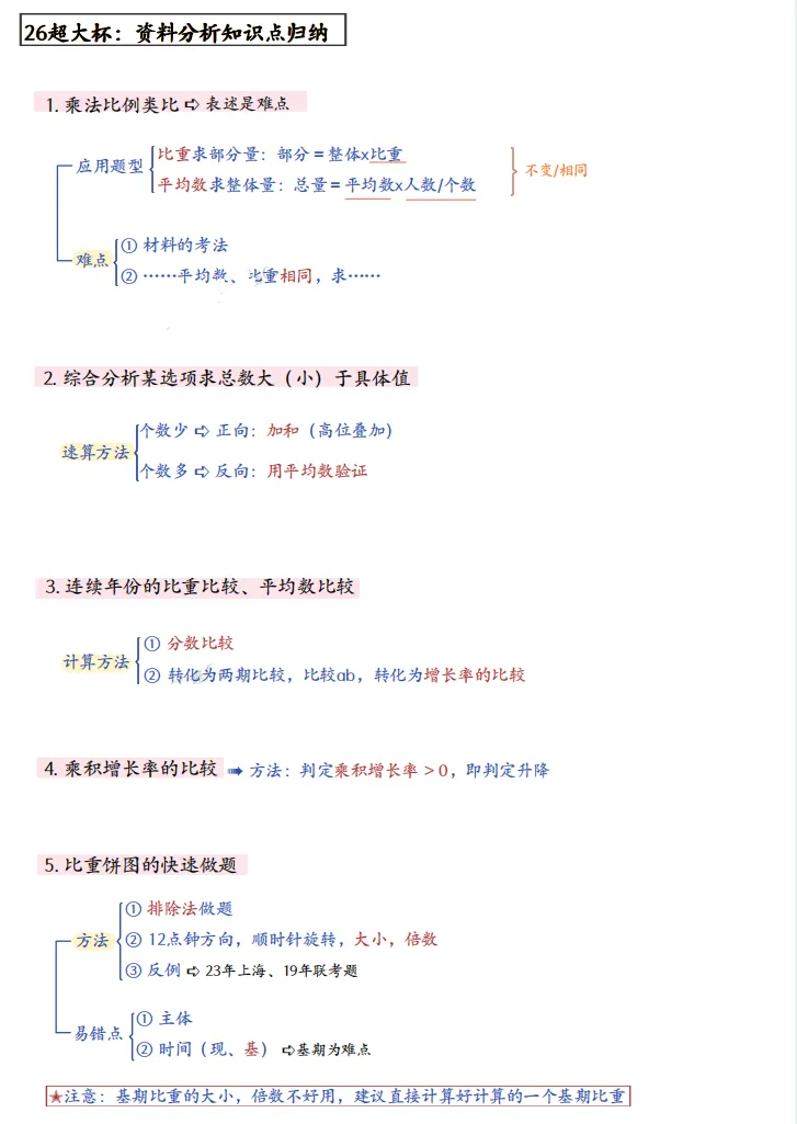 高照丨26资料分析超大杯讲义复盘笔记(100篇+知识点拓展题)