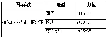 发下试卷之后,要合理的分配好各个题目的时间和写的内容。1,国际商务简答题题型简答题的分值占试卷分值的一半,五道题的题量。纵观近几年的考察和真题,大部分都是希尔《国际商务》第13版的重点题目,学弟学妹们重点背诵和书写工整以及完整答题思路,分数还是比较容易得分。2,国际商务论述题题型论述题的数量只有两道,在前面简答题的基础上,要学会多作答一些内容。其考试的题型就是国际商务里面的重点题型,和简答题要求差不多。3,国际商务材料题型材料题是给一段国际商务的案例或实际问题,根据案例的内容,结合国际商务的知识进行作答。一般这题的分值比较高,35分一道题。不仅仅要把自己背过国际商务的知识和内容默写上,最重要的是也要结合材料。书写的内容也是比较重要的,不仅仅要求概括的比较全面,而且也要拼手写的速度,前期的书写速度过慢,会影响最后一道题的分值。一定要进行全面综合安排,使其分值最大化原则。
