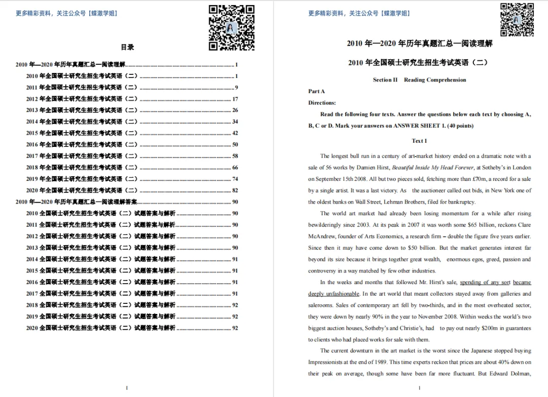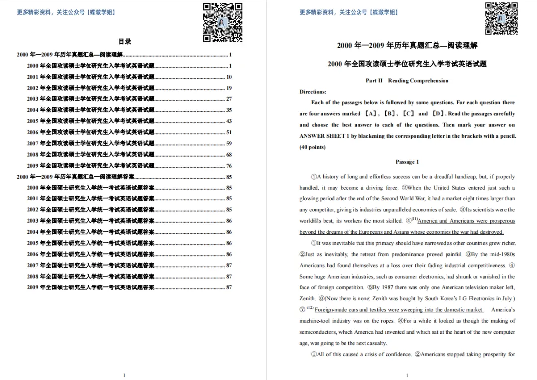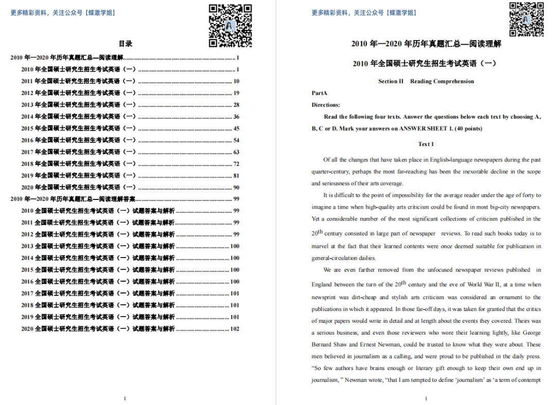 这份资料包含了00-20年的全部阅读真题!初期阶段可以拿较早的真题,像00-12年的来练手。一轮结束后可以开始13-20年的真题训练~