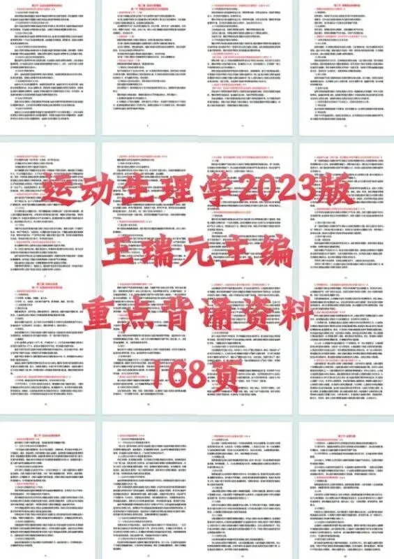 注:本资料适用于备考学校考试内容涉及运动生理学王瑞元2023版参考书的同学们。