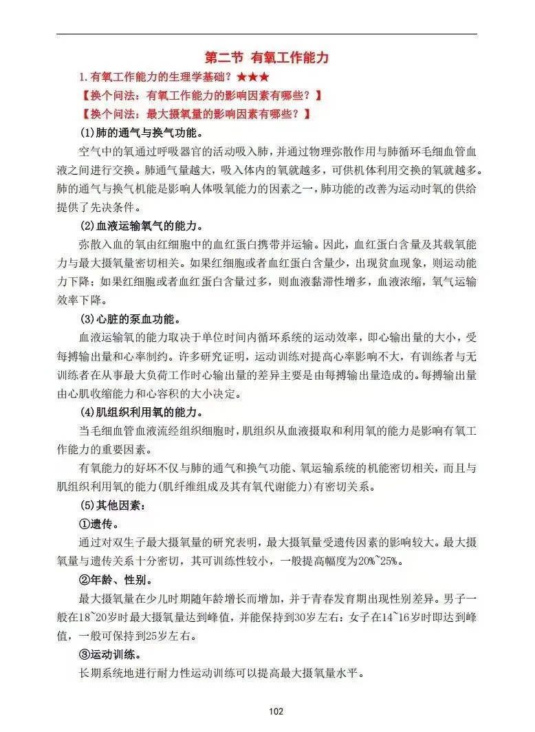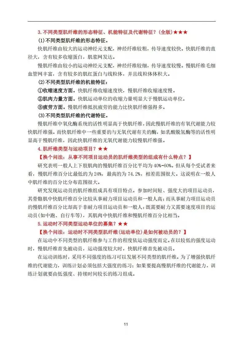 经过小李学长体育考研团队老师的共同努力,对【运动生理学王瑞元2023版】书本内容进行了精缩提炼,以及重点内容的星级划分,下面是对资料部分重点内容的展示: