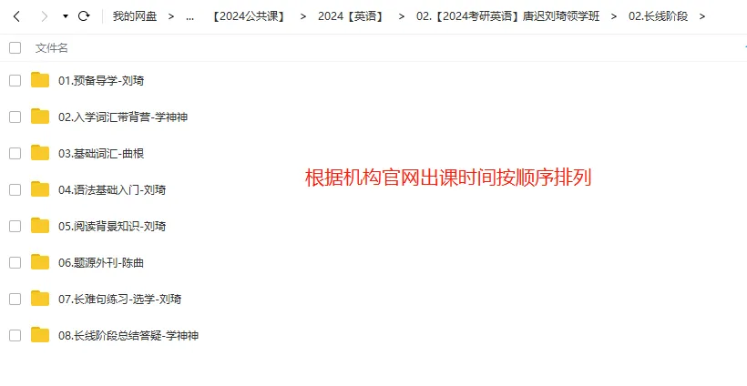 百度云群中资料每天自动更新,不用再手动保存到自己网盘,而且资料整理有序,比如有道(唐迟)全程班的课程在百度云群组中是下面的样子: