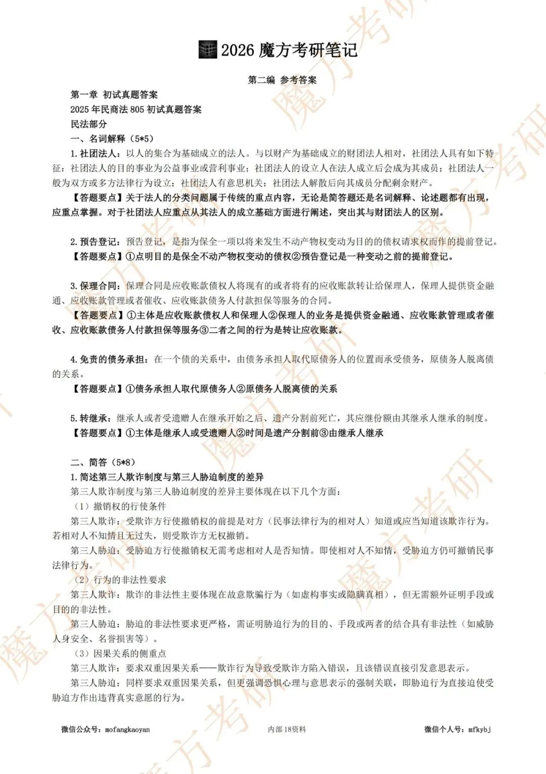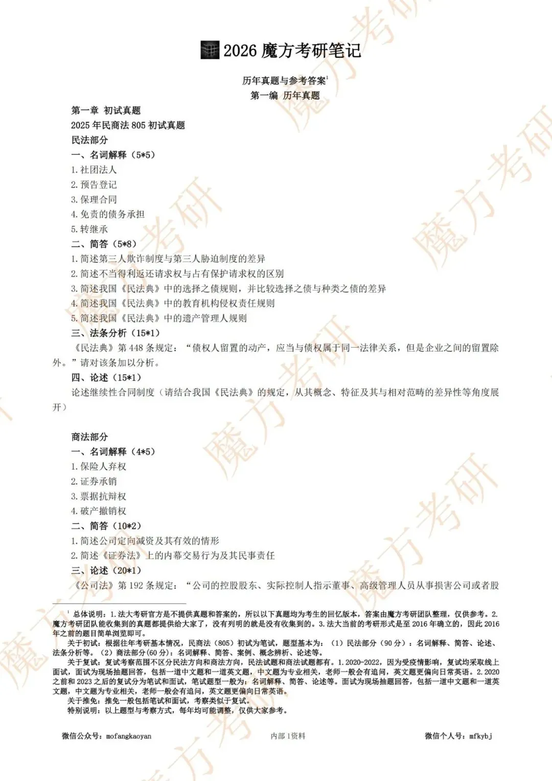 26版805真题部分【单独成册】,黑白打印。一共包含了2016-2025年历年考研的初试及复试真题,并且整理了参考答案。由于官方是不提供真题的,均靠考生回忆,所以部分年份的真题可能不全面、部分年份的真题没有收集到。同时纳入了部分保研真题。26版笔记对每一道真题答案均增加答题要点,帮助考生掌握答题方法、相关背景等。