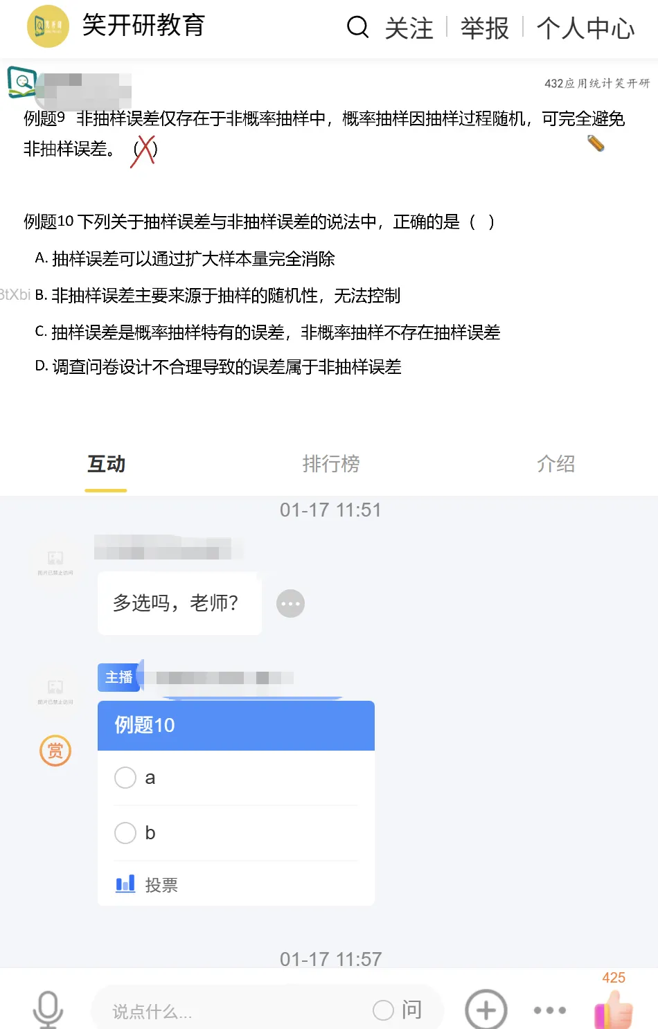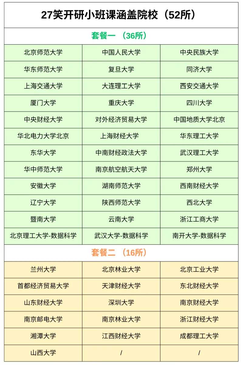 作为一只考研小白,是不是感觉很迷茫,有一颗想要强烈准备考研的的心,但是静下心来却不知该如何下手?还没有确定目标院校,可是身边的研友们已经进入学习状态了,怎么办?有点急但先别着急,如果还没有确定院校,强烈建议你看看我们的27应用统计全程班!基础核心课全面复习+定校课侧重复习,助你考研上岸!!