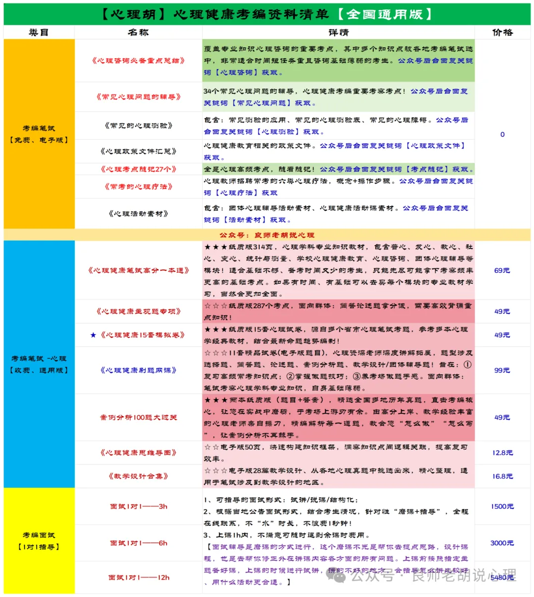 根据心理健康学科考编大纲要求,心理胡为广大考生准备了心理健康学科备考全家桶,一站式备考笔试!