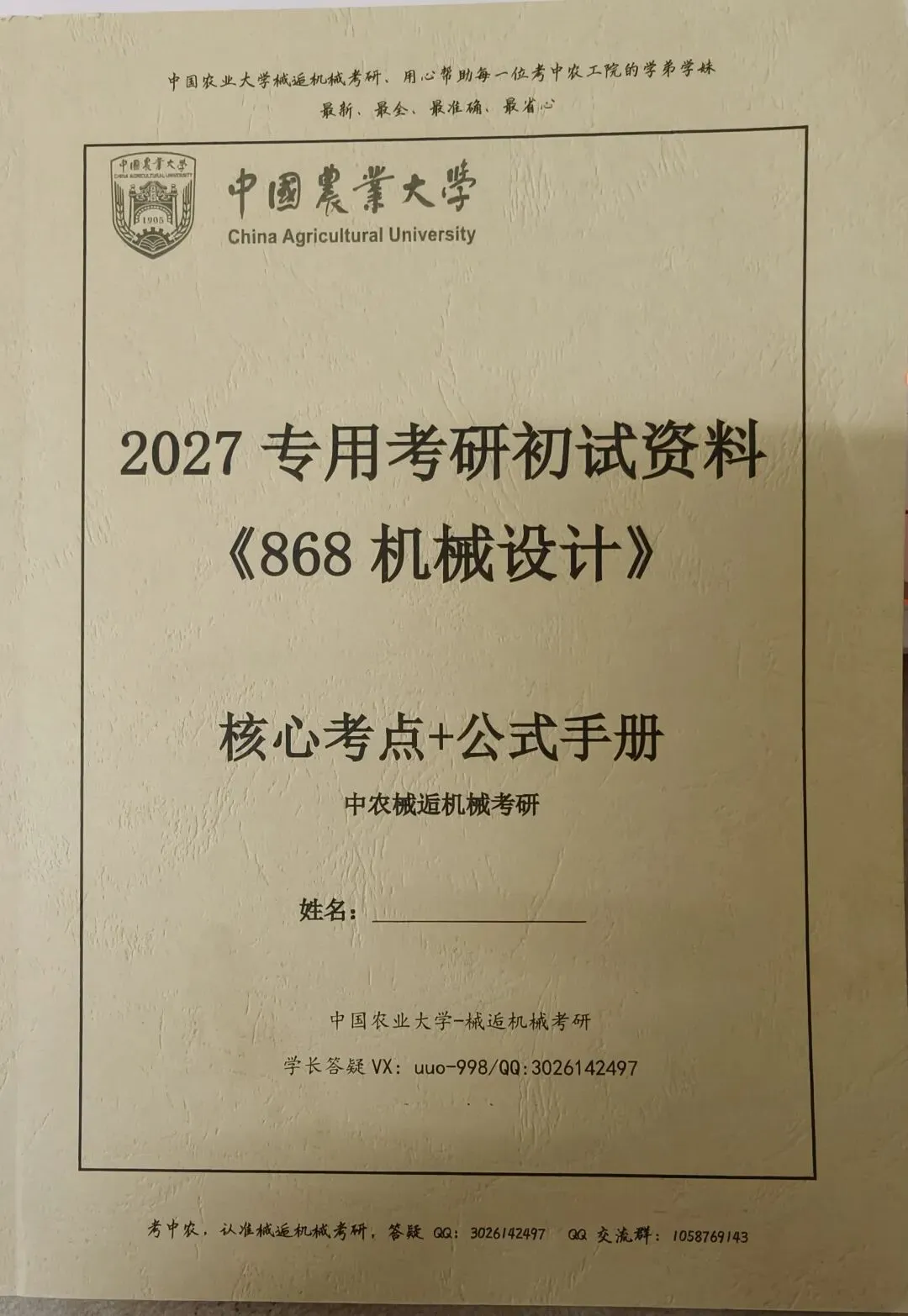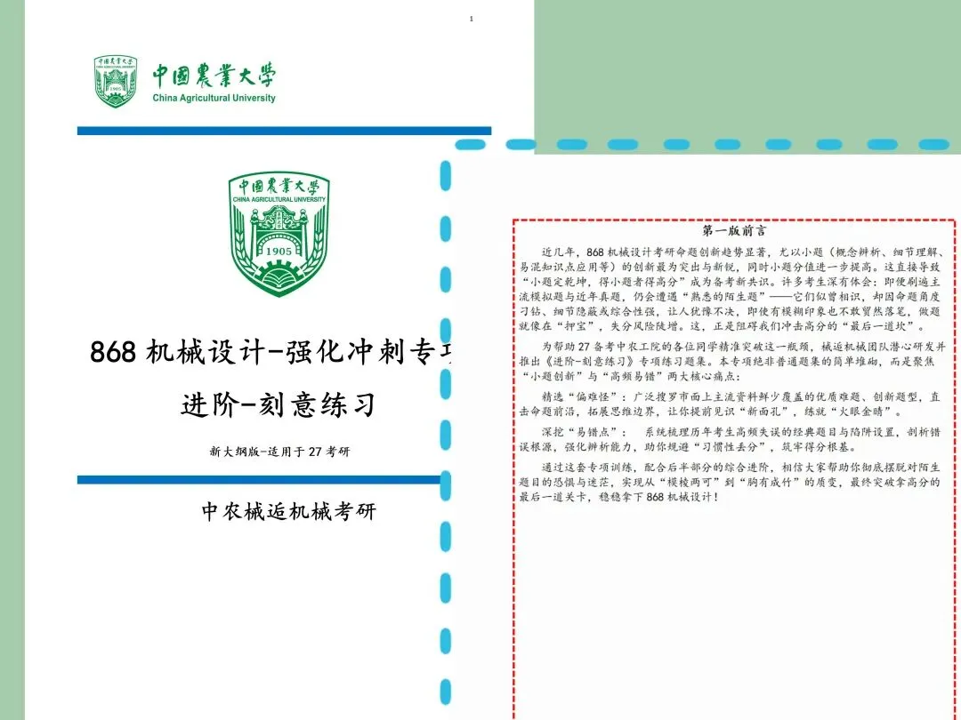 各位备考中国农业大学机械专业的同学们注意啦!今年27考研「械逅机械」868考研资料迎来重大焕新,从内容质量到体验全面升级,我们来看看吧~