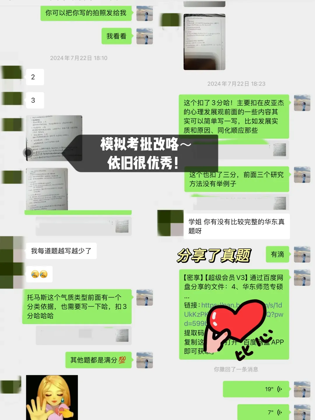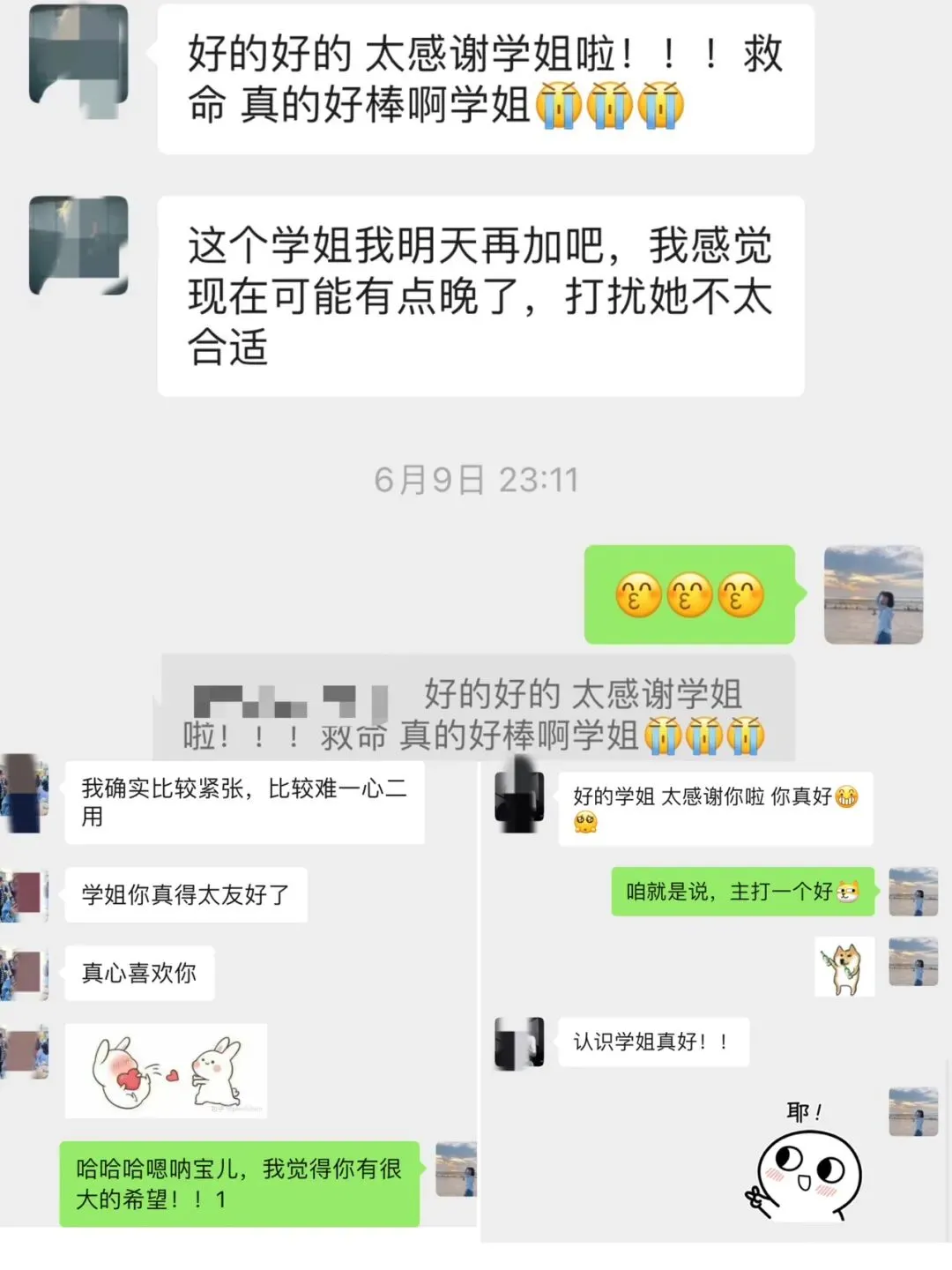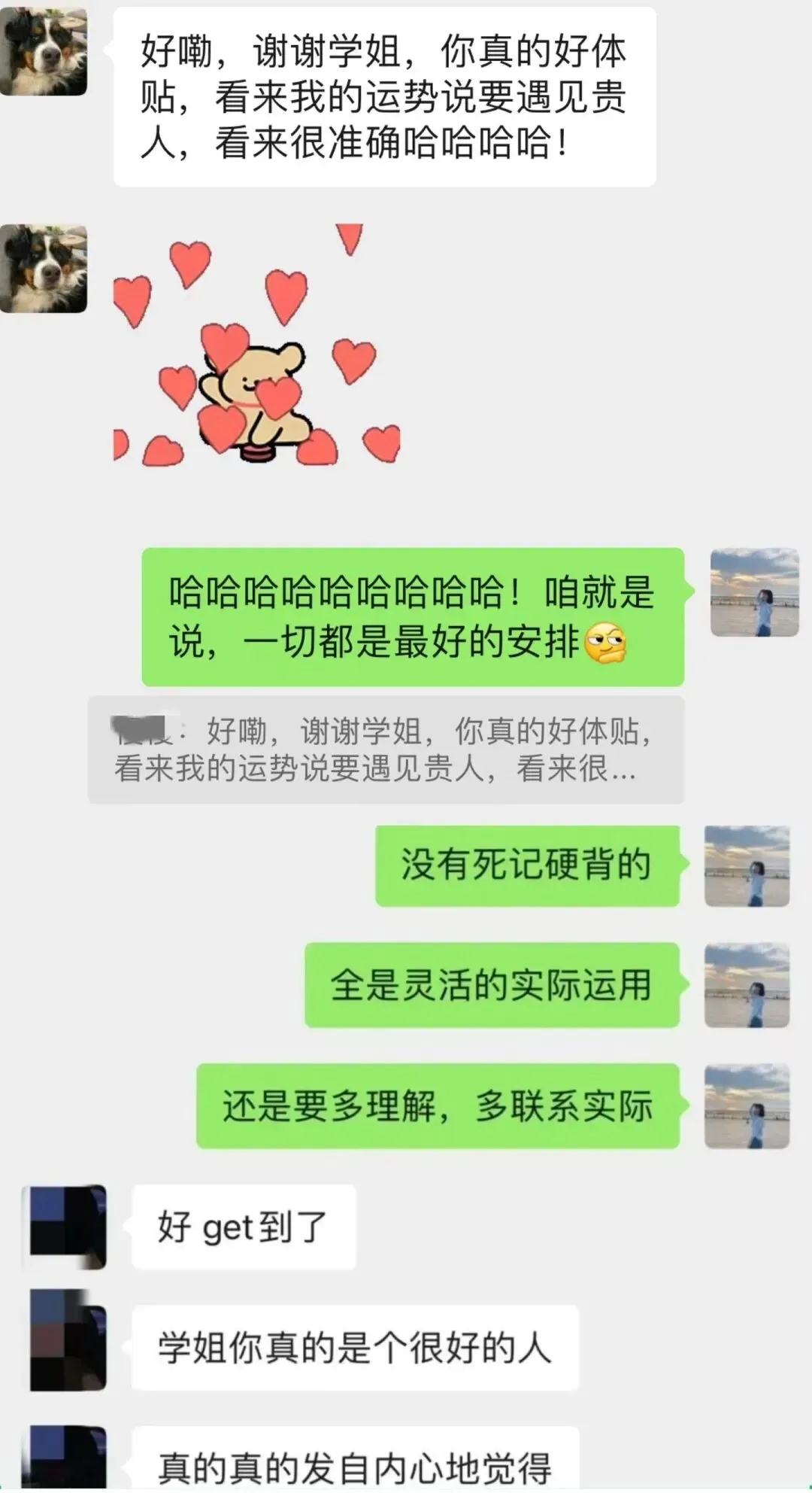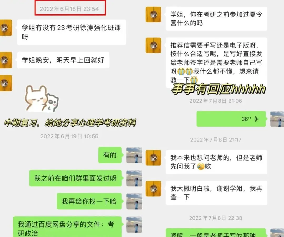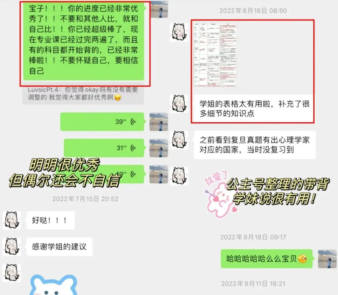 【她的原话:我初试的时候朵拉姐真的真的真的帮了我很多,不论是我考研心态,专业课的干货,时间规划还是报班什么的,我发的东西她真的都有很认真地看然后会花很多时间很用心帮我解答,也特别特别会鼓励我!!朵拉学姐我备考期间最最最最爱的学姐!❤️】