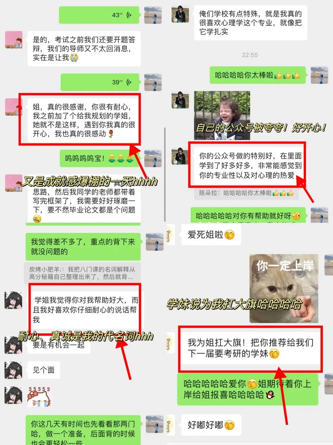 如果你问我,是什么让你一直坚持做心理学考研辅导,并且今年开启了第五年考研辅导之路😎我想,这些数不胜数的感谢和看到他们成功上岸后的喜悦和骄傲自豪感,就是答案!