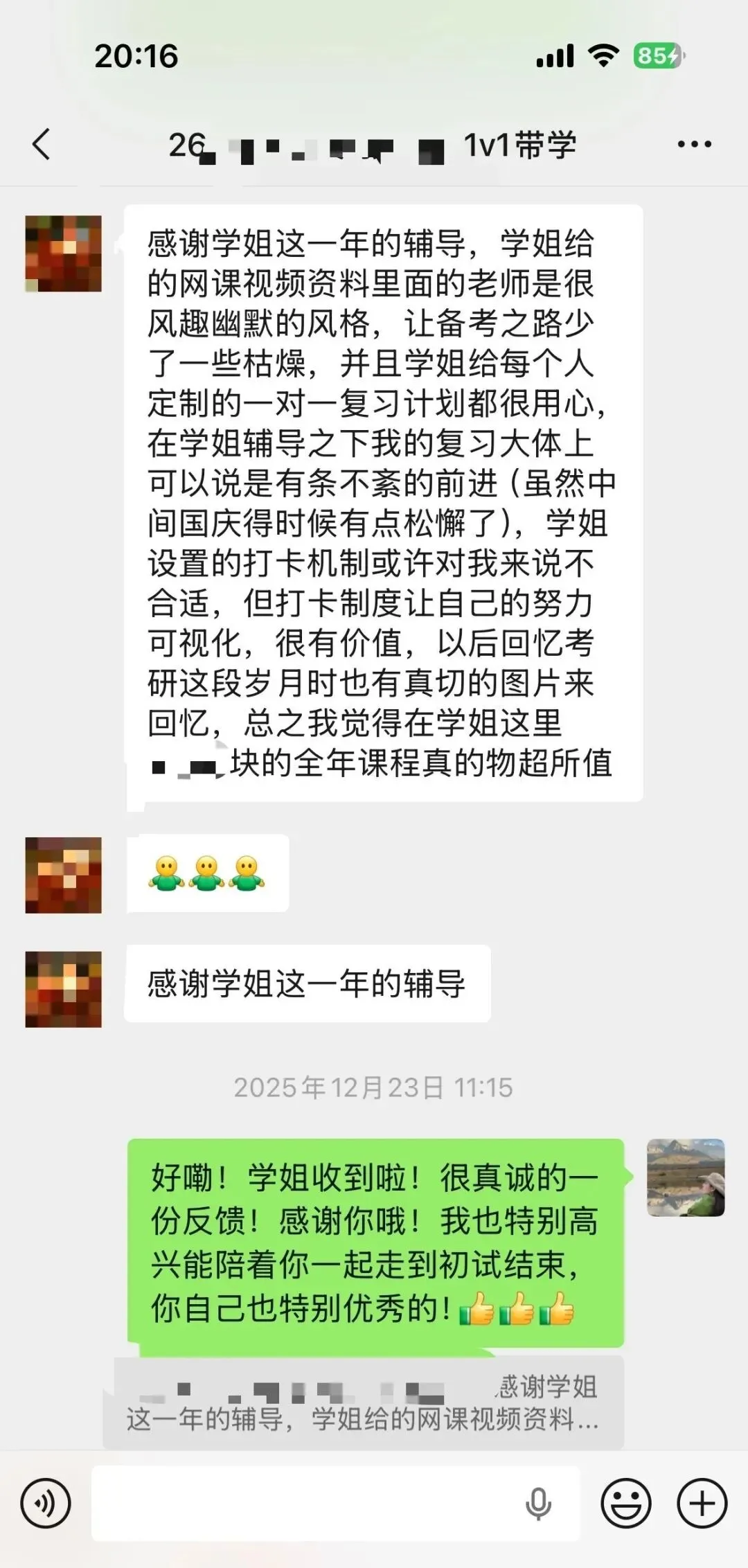 后面当然就开启了我们一年的1v1辅导啦!