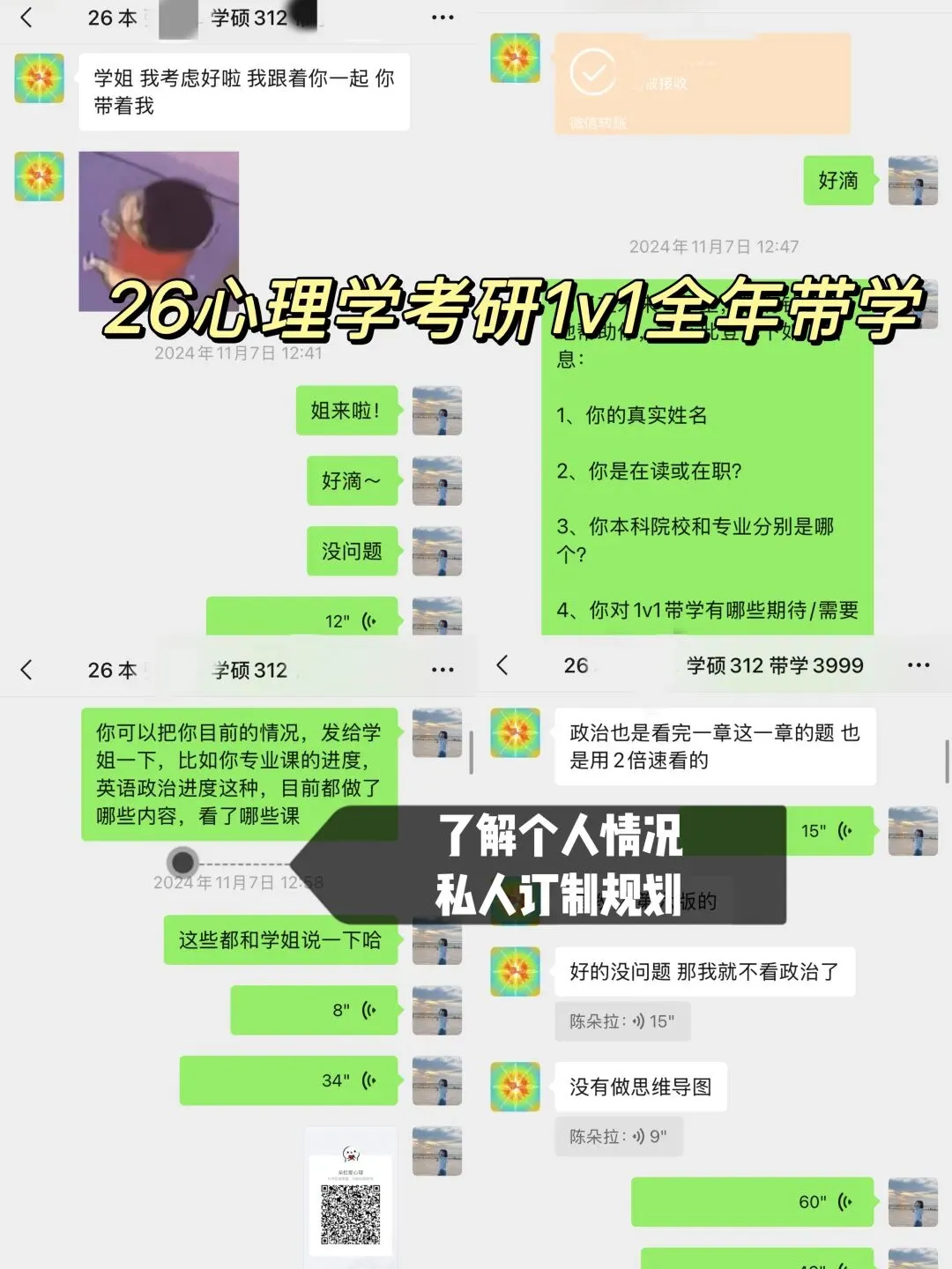 (10)全程1v1交流、沟通、答疑、规划、陪伴(一直到初试结束)
