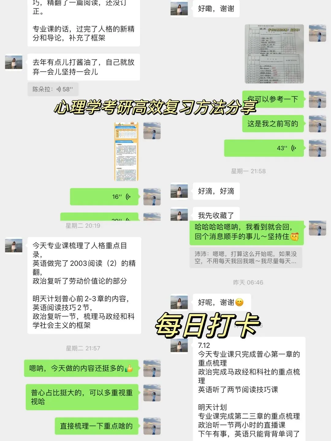 (6)定期向朵拉学姐汇报复习情况及进度,及时解决复习疑问