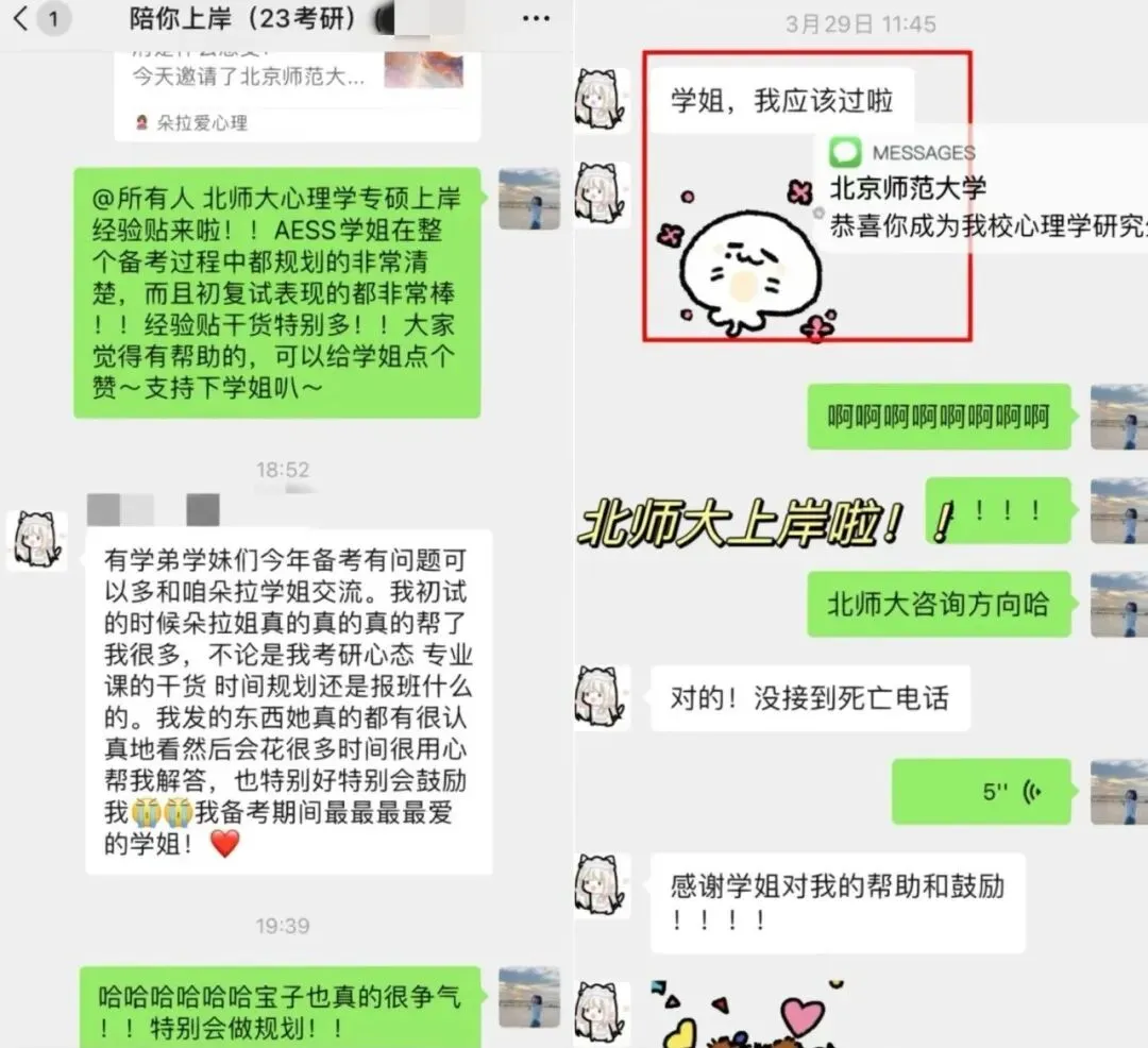 这个学妹本科是一所211,跨考生,当时最开始是备考的复旦大学心理学专硕,后面转战到北师大啦,备考过程中一直很清晰的做规划,为此朵拉学姐还神预言了一波hhhhh(当时跟她说,你不上岸谁上岸hhhh)结果最后真的上岸啦!!