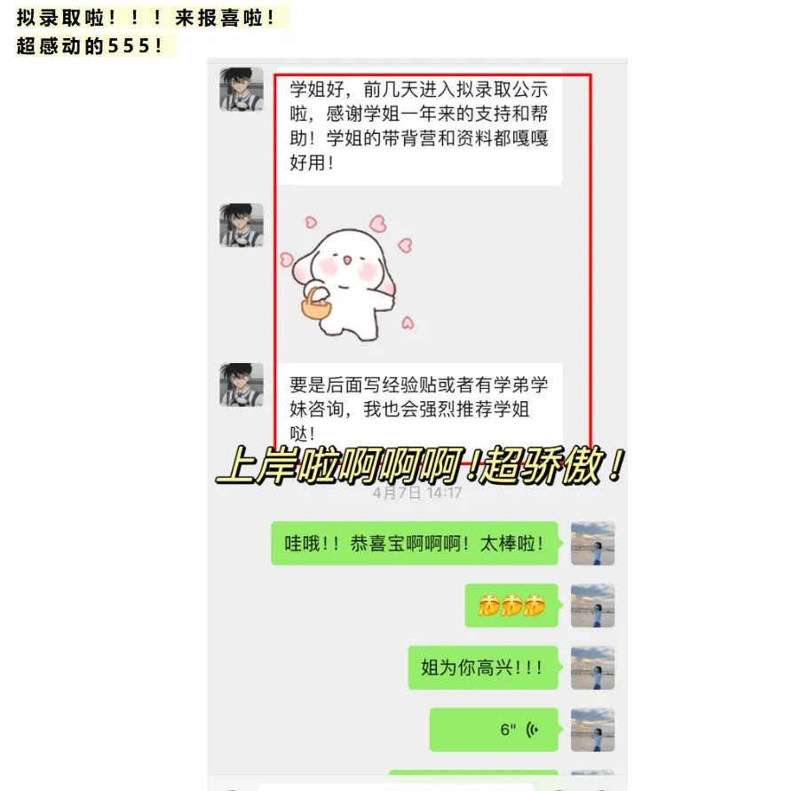 很开心自己能够被其他学妹推荐给更多的考研人,能帮助到大家我自己也成就感max!
