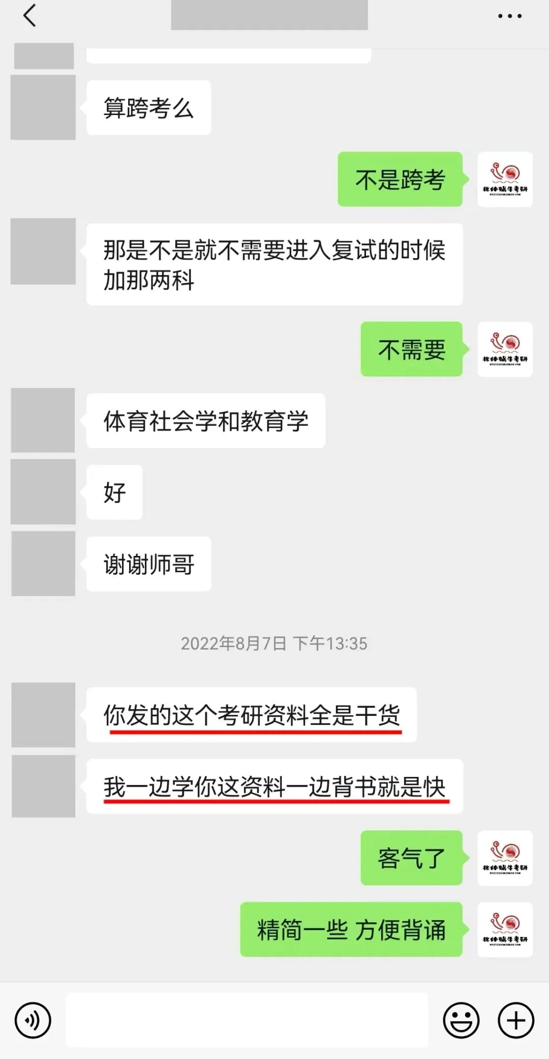 三、增值服务:学长免费回答考研中遇到的任何问题,如选择专业、初试备考、复试面试问题等。