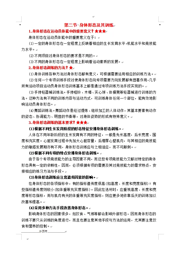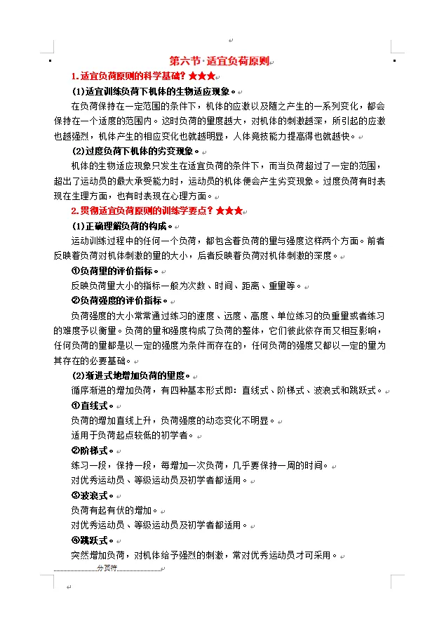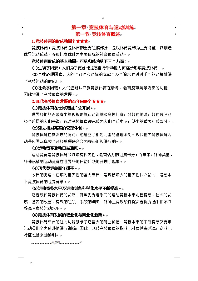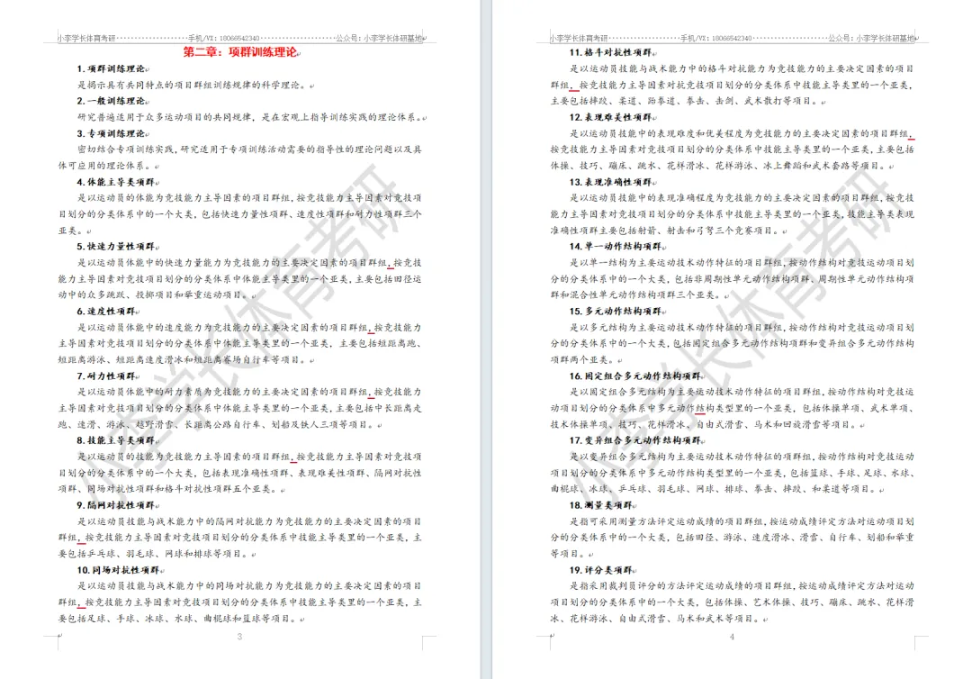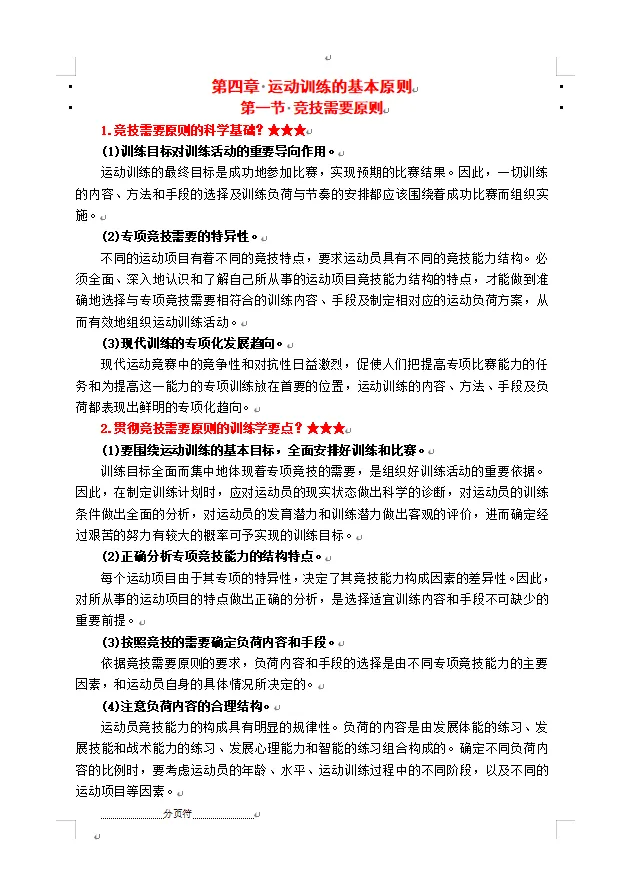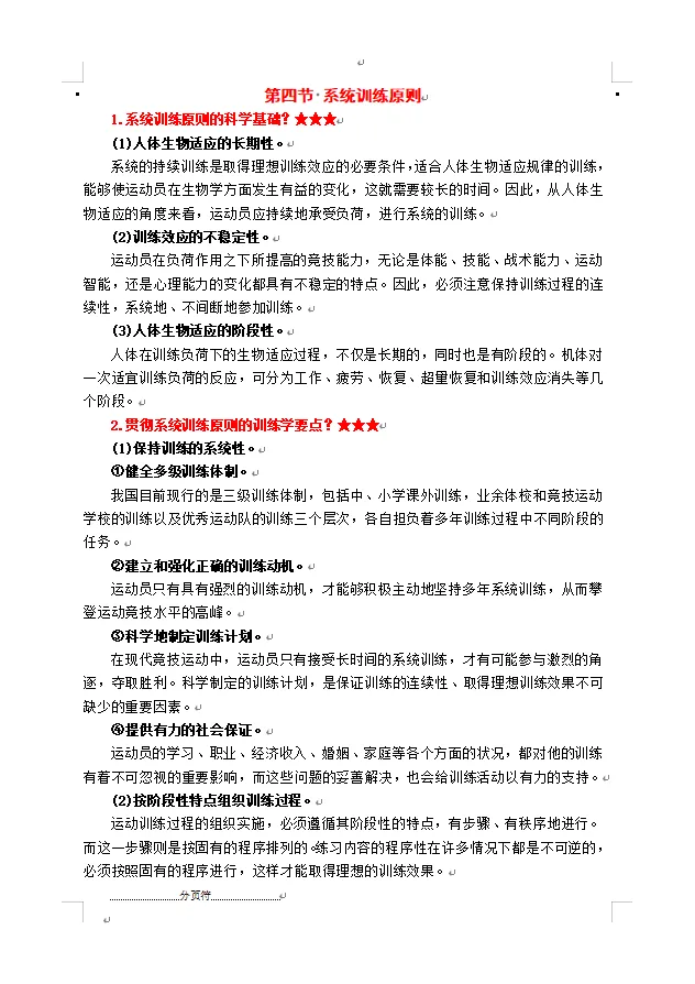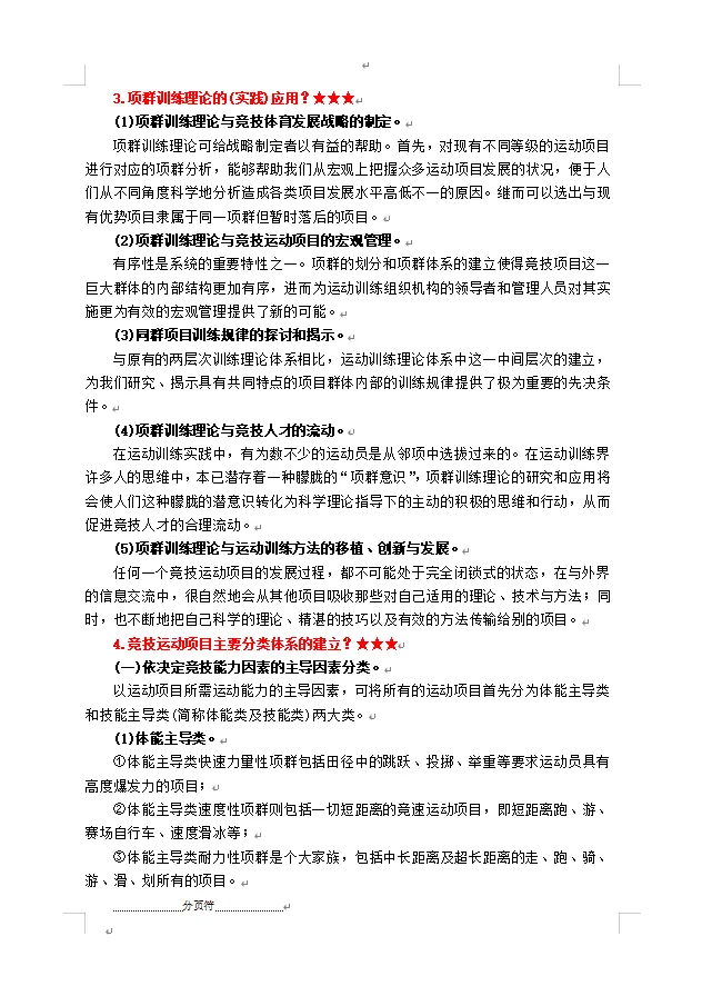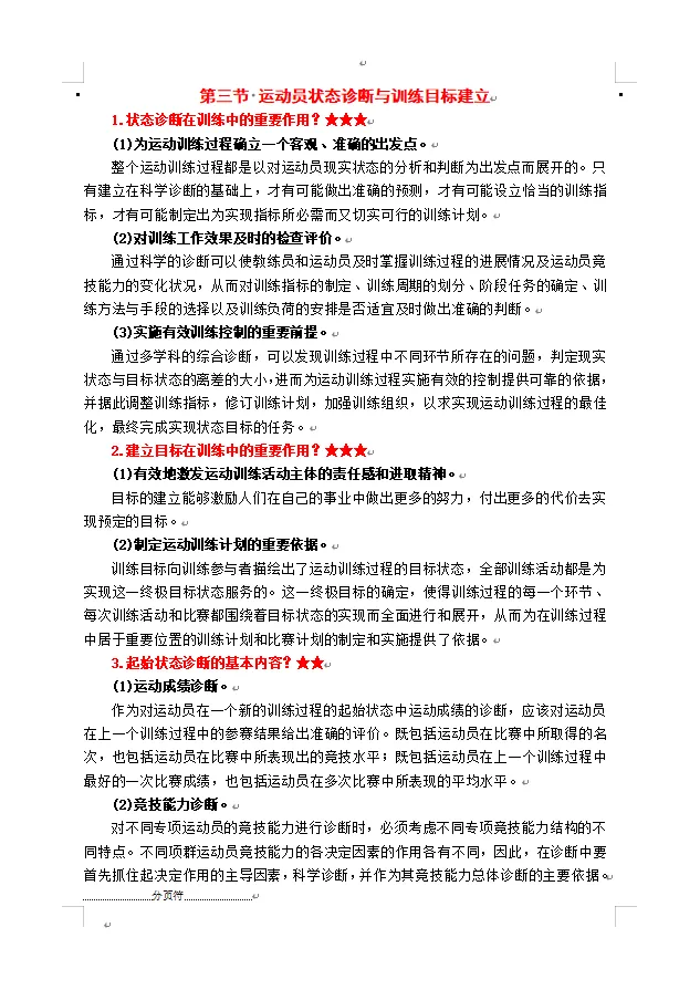 经过小李学长体育考研团队老师的共同努力,对【运动训练学田麦久2000版】书本内容进行了精缩提炼,以及重点内容的星级划分,下面是对资料部分重点内容的展示: