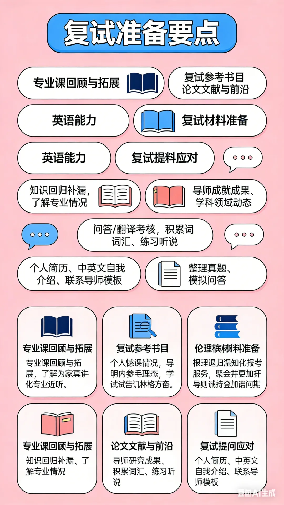 其次,翻开复试细则大致了解复试形式、考核内容、分值和考核流程。大概率可以提前了解该专业历年复试的备考书籍准备。