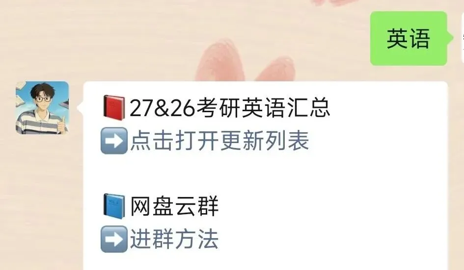 学长每天会在考研资料分享社群里分享更新课程资料,同时也会分享一些关于考研的信息差和最新考研资讯(进社群方式在公众号菜单栏)!