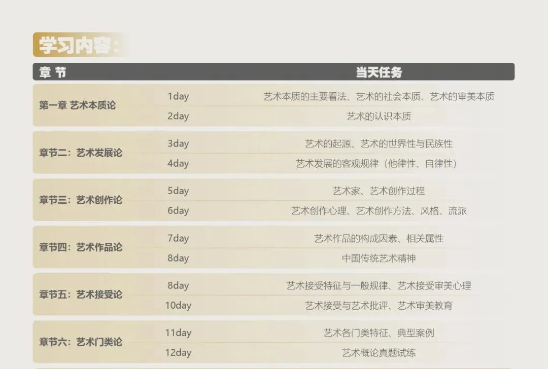 1、完成史论科目的逻辑性学习,完成基础的知识框架搭建;