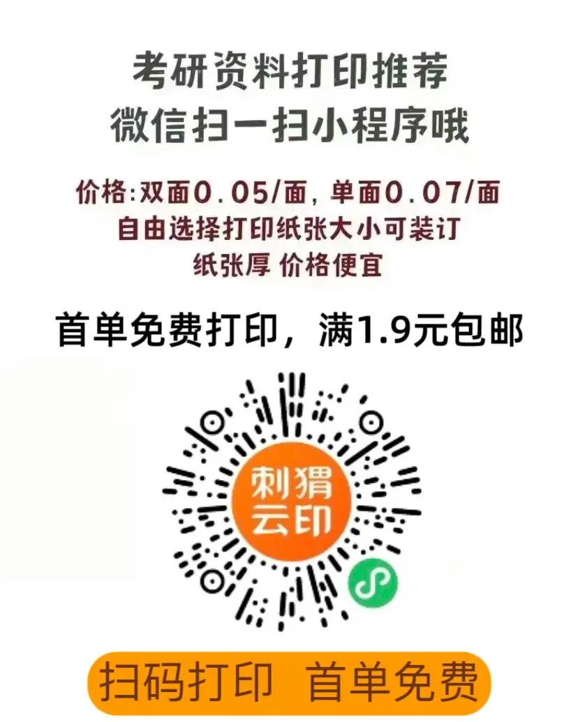 大家需要打印的考研资料可以扫码小程序上打印,主要便宜,质量也很好,还包邮。