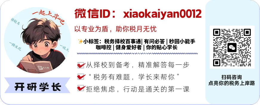 27税务专硕考研全程VIP班上线!和公共课连报,优惠折扣力度更大哦!详情咨询开研学长微信:xiaokaiyan0012