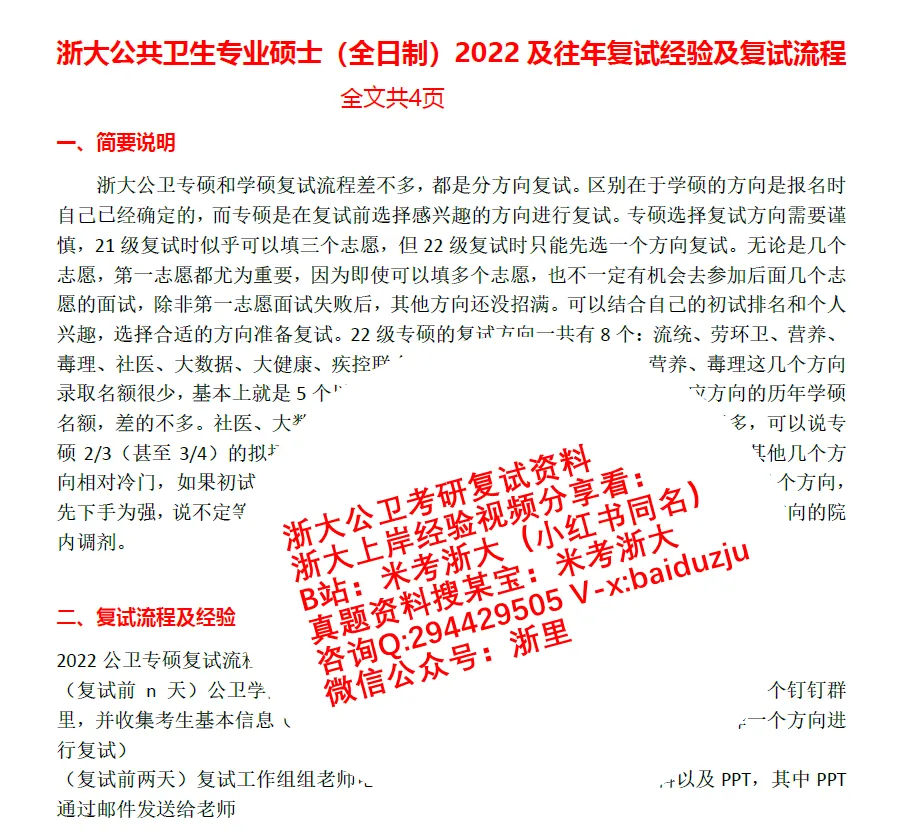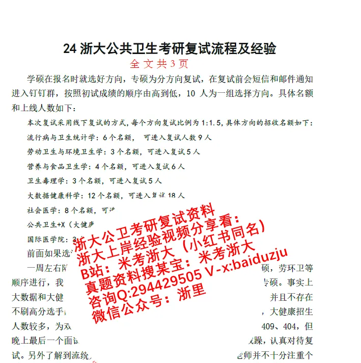 2.2024浙大公卫考研复试流程及备考经验(24学姐总结)