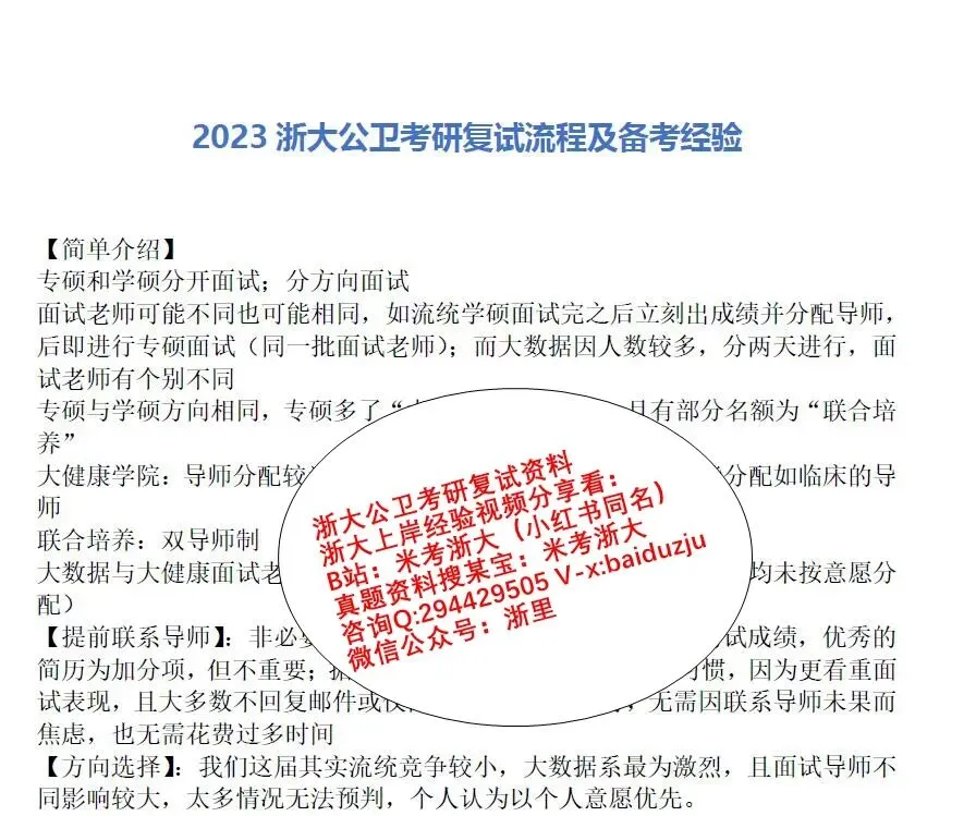 3.2023浙大公卫考研复试流程及备考经验(23学姐总结)