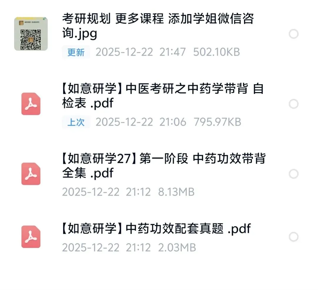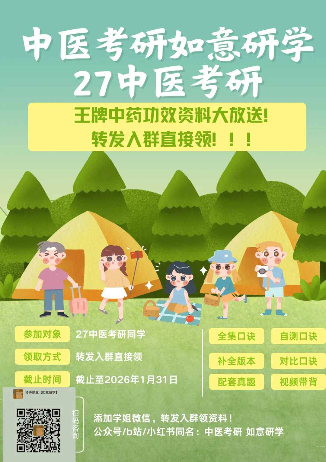 加学姐微信后发送截图无门槛进群,即可领取:中药功效补全版本资料 + 视频全集(仅限27中医考研同学,机构或其他人群勿扰)