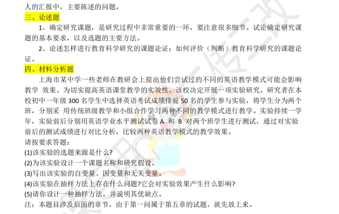 适用专业:青岛大学教育科学学院的小学教育、教育管理、现代教育技术、心理健康教育、学前教育。(非全卷子一样,同样适用)一、背诵讲义